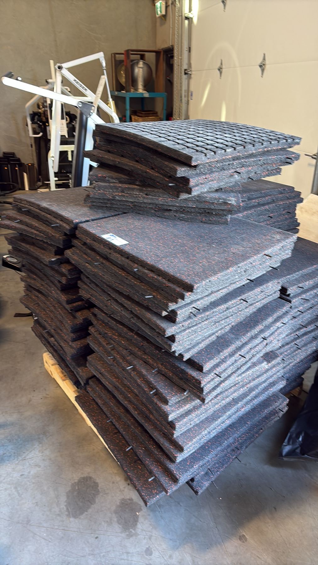BLACK RUBBER FITNESS FLOORING TILES - APPROX 72 SQFT
