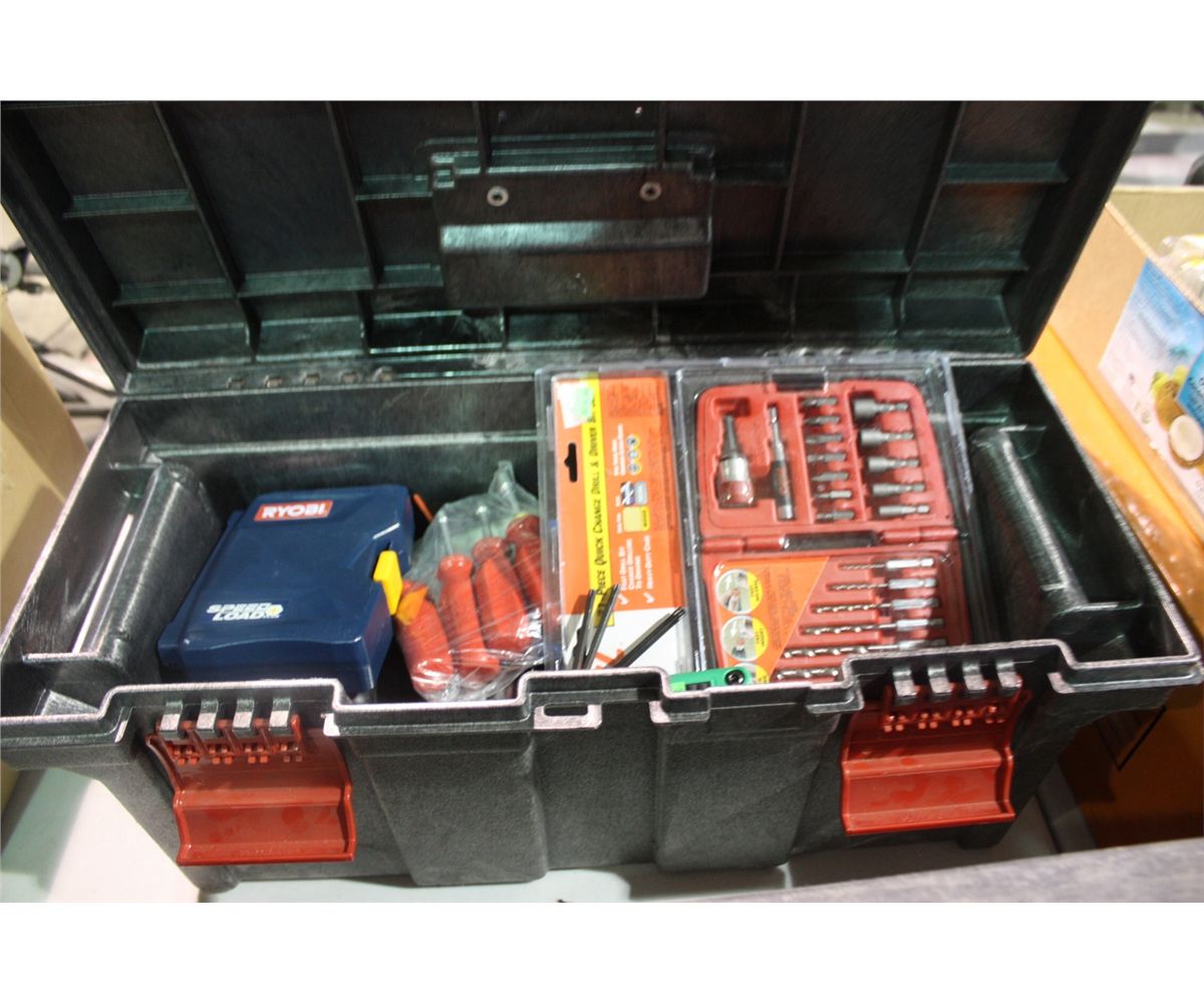 BLACK TOOL BOX & CONTENTS