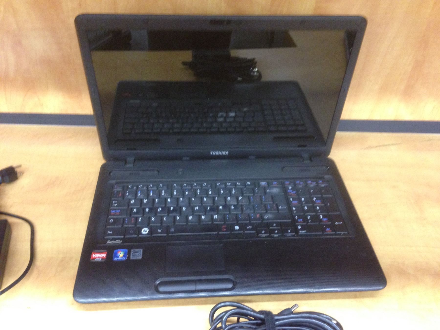 BLACK TOSHIBA NOTEBOOK COMPUTER, COMES WITH POWER SUPPLY, NO HARD DRIVE, CONDITION UNKNOWN