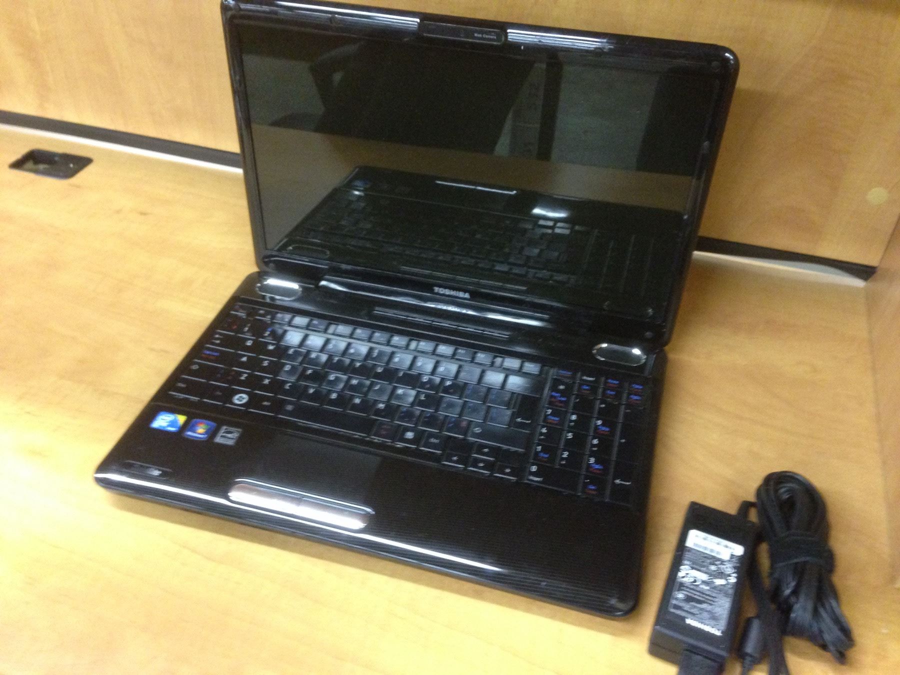BLACK TOSHIBA NOTEBOOK COMPUTER, COMES WITH POWER SUPPLY, NO HARD DRIVE, CONDITION UNKNOWN