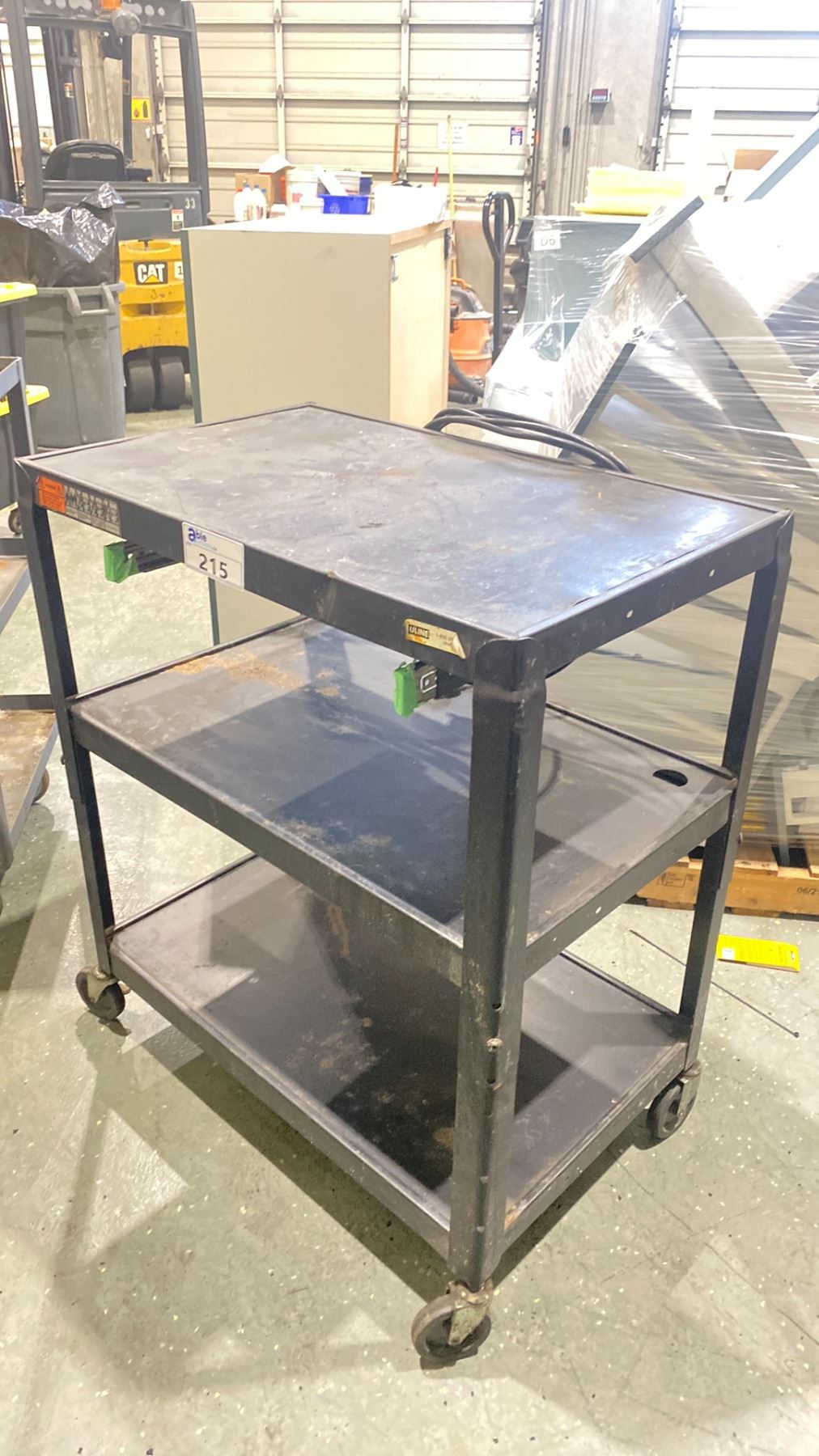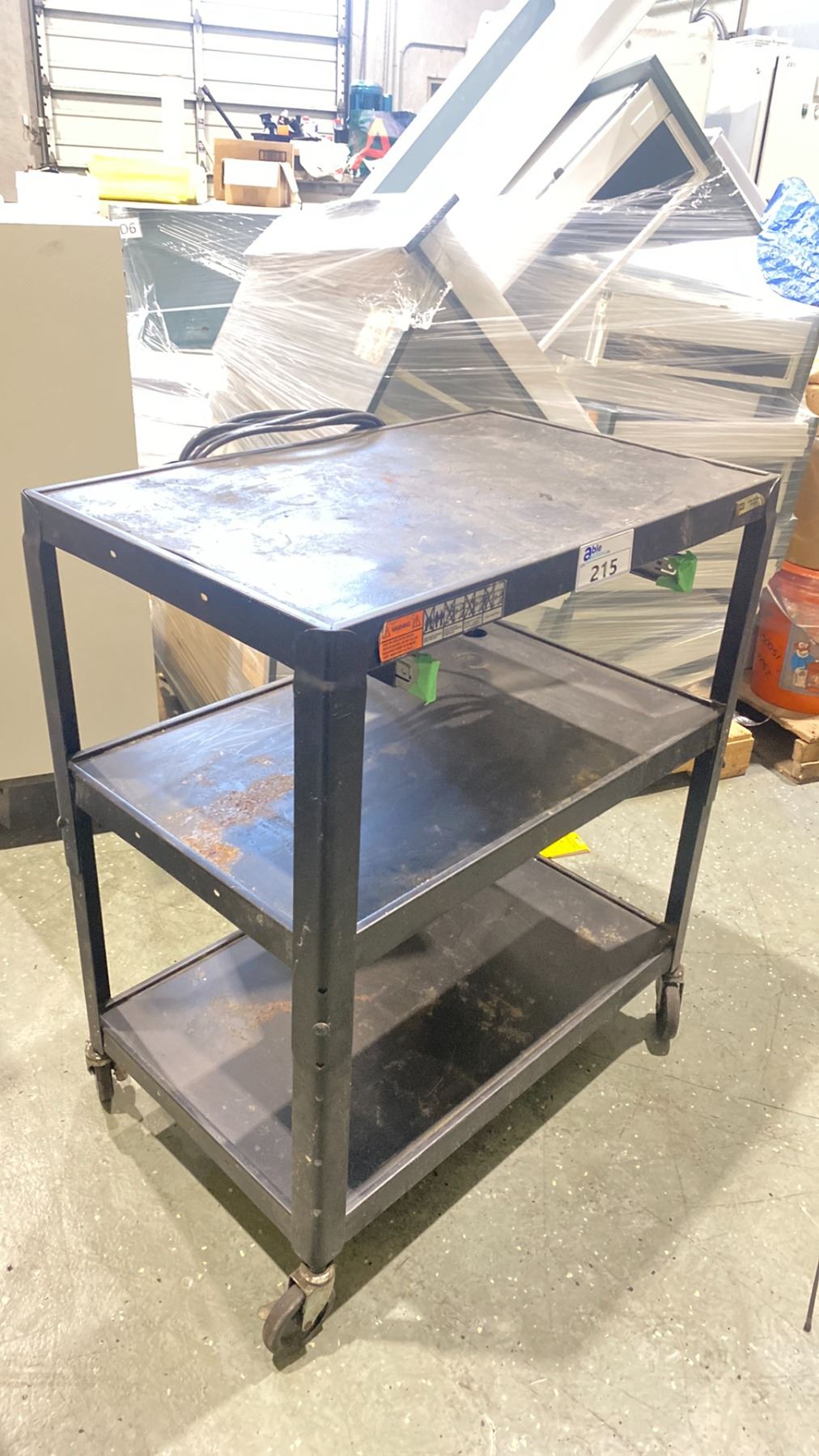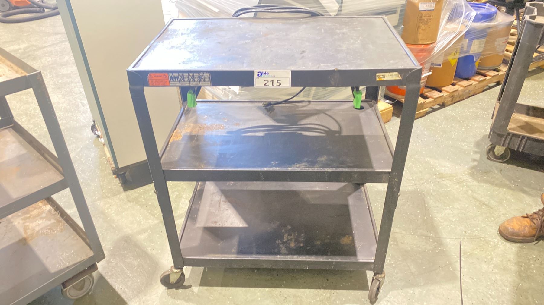 BLACK ULINE 3 TIER POWER READY PRODUCT CART