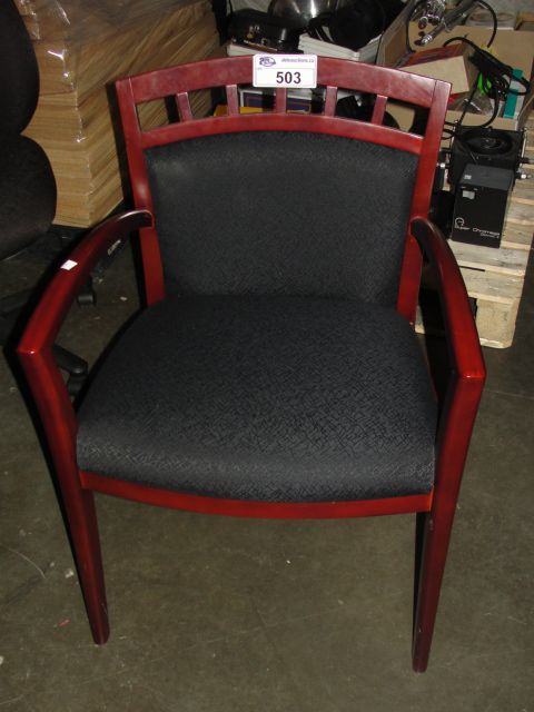 BLACK UPHOLSTERED AND BURGANDY OFFICE CLIENT CHAIR