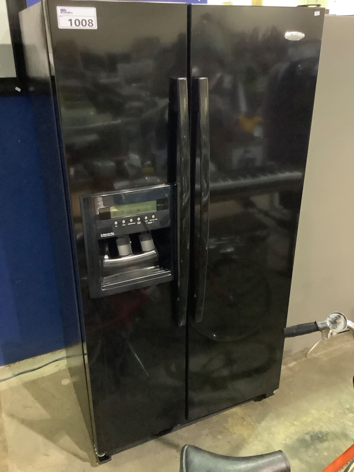 BLACK WHIRLPOOL FRIDGE WITH WATER/ICE DISPENSER MODEL GC3SHAXVB00