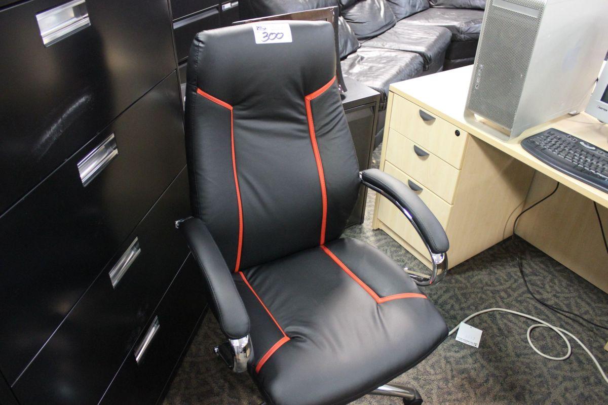 BLACK WITH RED ACCENT LEATHER HIGHBACK EXECUTIVE