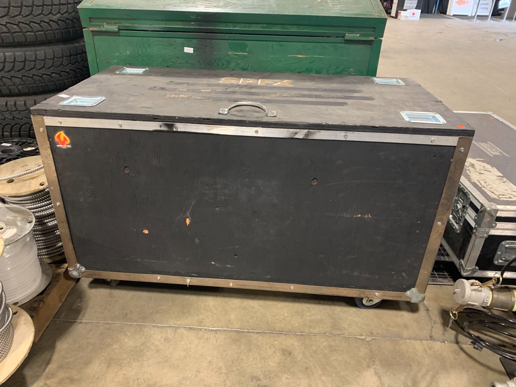 BLACK WOODEN 48"W X 24"D X 29"H MOBILE PROFESSIONAL TRANSPORT CASE