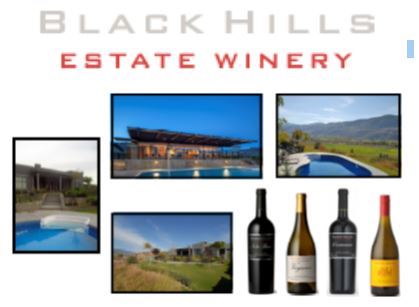 BLACKHILLS WINERY VIP CABANA TASTING VALUED AT $200JOIN THE BLACK HILLS WINE EXPERIENCE CENTRE FOR AN EXCEPTIONAL PRIVATE WINE EXPERIENCE TASTING. IMMERSE YOURSELF IN THE ESTATE'S TERROIR - WHERE CELEBRITIES HAVE BEEN KNOWN TO SAMPLE A GLASS OR TWO - AND ENJOY TASTINGS FROM ALL OF THE CURRENT VINTAGES, INCLUDING THE SIGNATURE NOTA BENE.