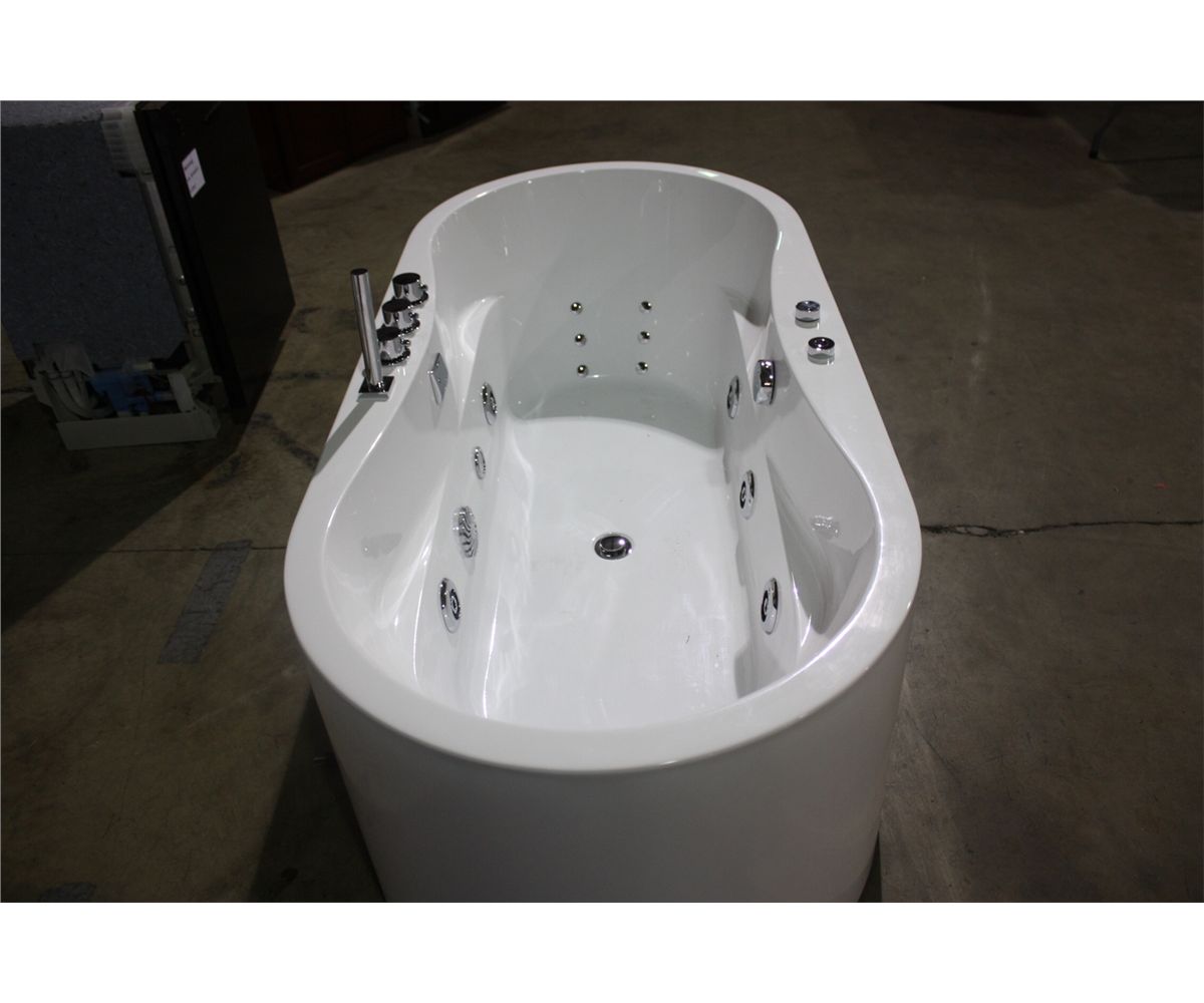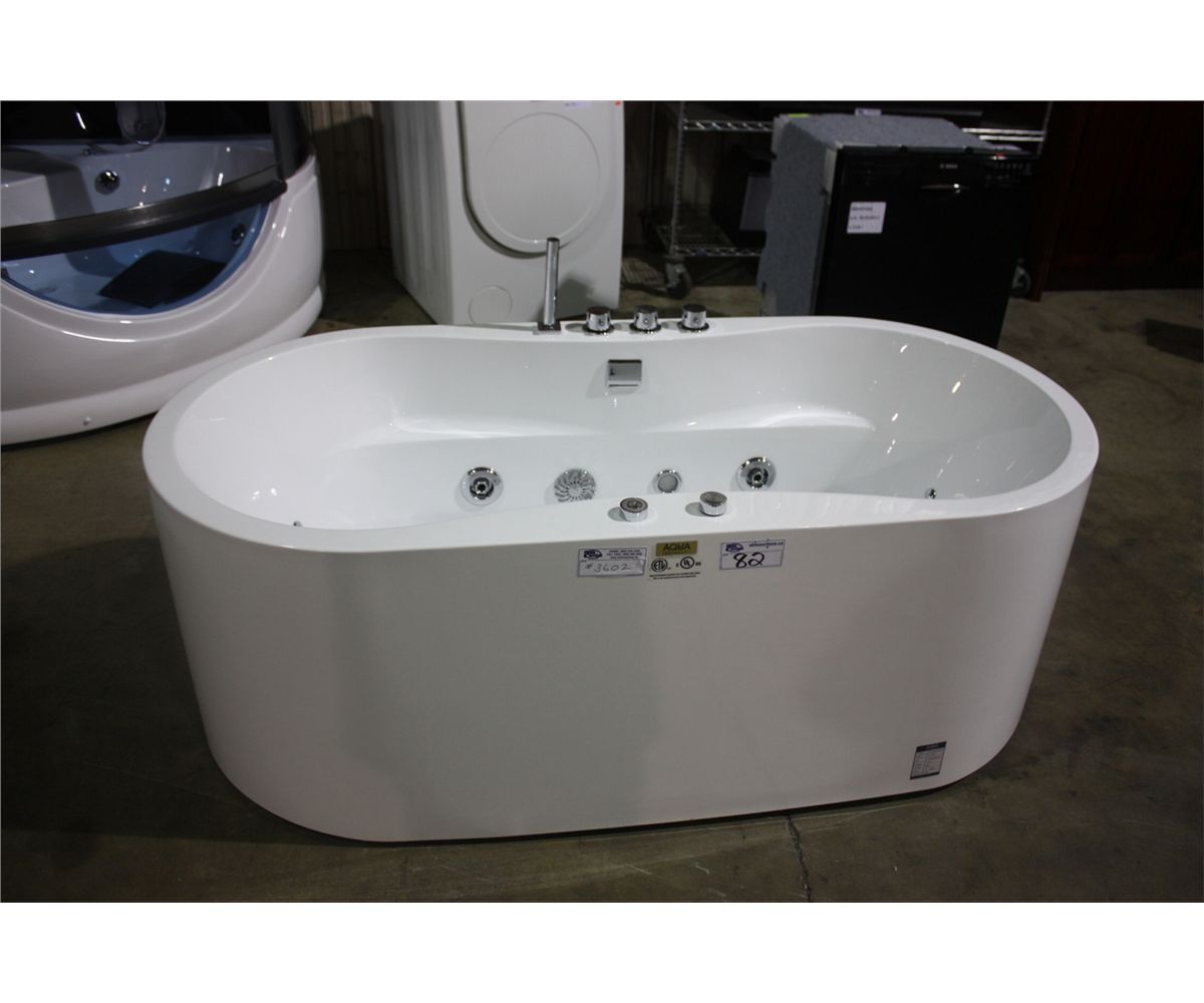 BLISS DESIGNER JETTED BATHTUB INC.: 5 ADJUSTABLE JETS, 12 MINI ACUPRESSURE JETS, INLET FAUCET, SOLID BILLET HANDHELD SHOWER, WATERFALL FAUCET, MARINE GRADE FIXTURES, 1.2 HP PUMP AND MORE. (FLOOR MODEL)