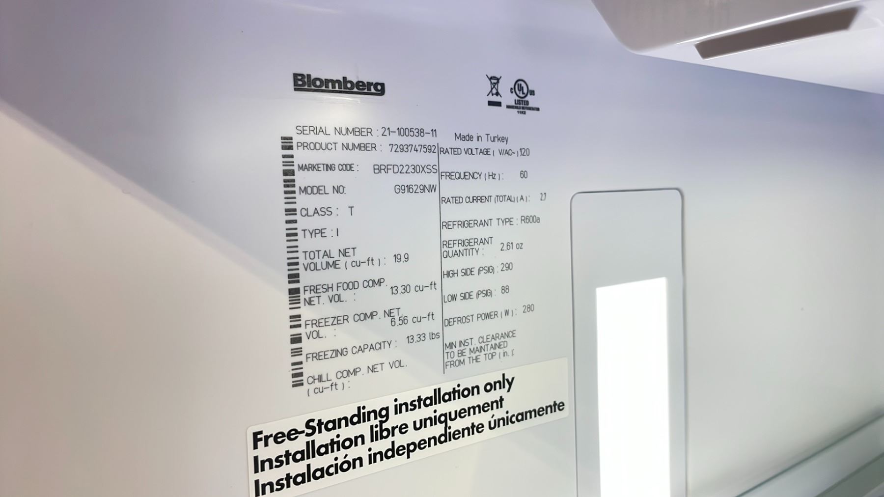 BLOMBERG BRFD2230XSS 36" STAINLESS STEEL 2 DOOR, 1 DRAWER REFRIGERATOR *IN BOX* DUO CYCLE FROST FREE COOLING, INTERIOR FILTERED WATER DISPENSER & DIGITAL DISPLAY 35 3/4"W X 26 13/16"D X 69 3/4"H, RETAIL $4,699.00
