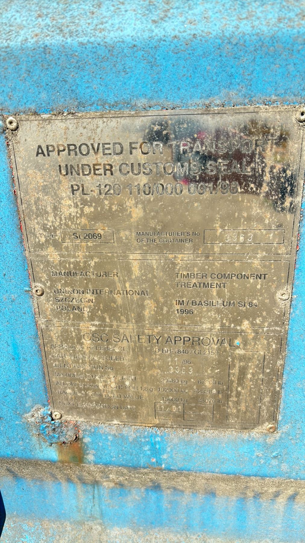 BLUE 20FT METAL C-CAN STORAGE/TRANSPORT CONTAINER **REMOVAL OF THIS PIECE REQUIRES HIAB/CRANE LIFT OR TILTING FLAT DECK TOW** ** LAST DAY REMOVAL - MONDAY AUGUST 26TH **