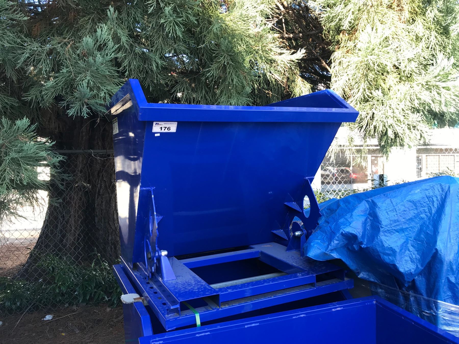 BLUE 43" X 43" METAL TILTING FORKLIFT ATTACHMENT DUMPING BIN