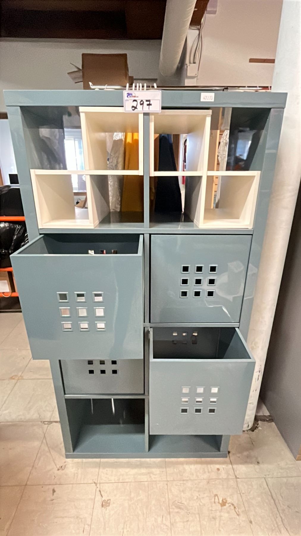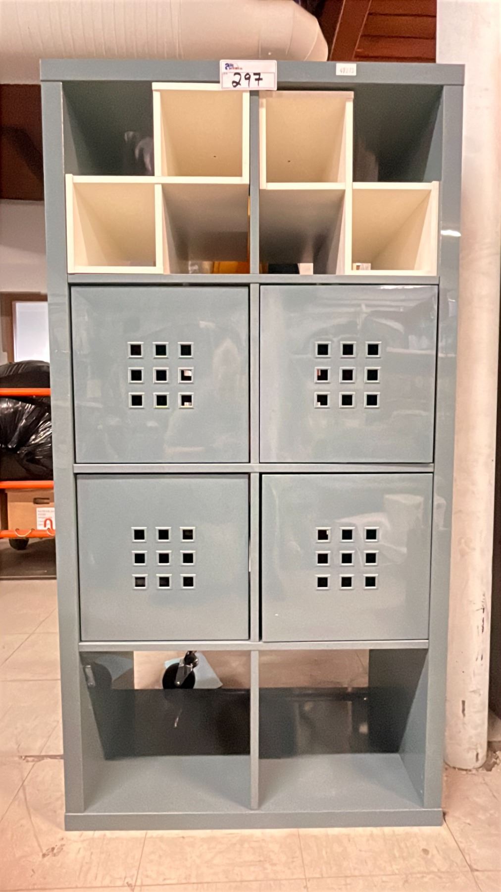 BLUE 8 SECTION STORAGE SHELF - APPROX. 30"W X 15.5"D X 58"H