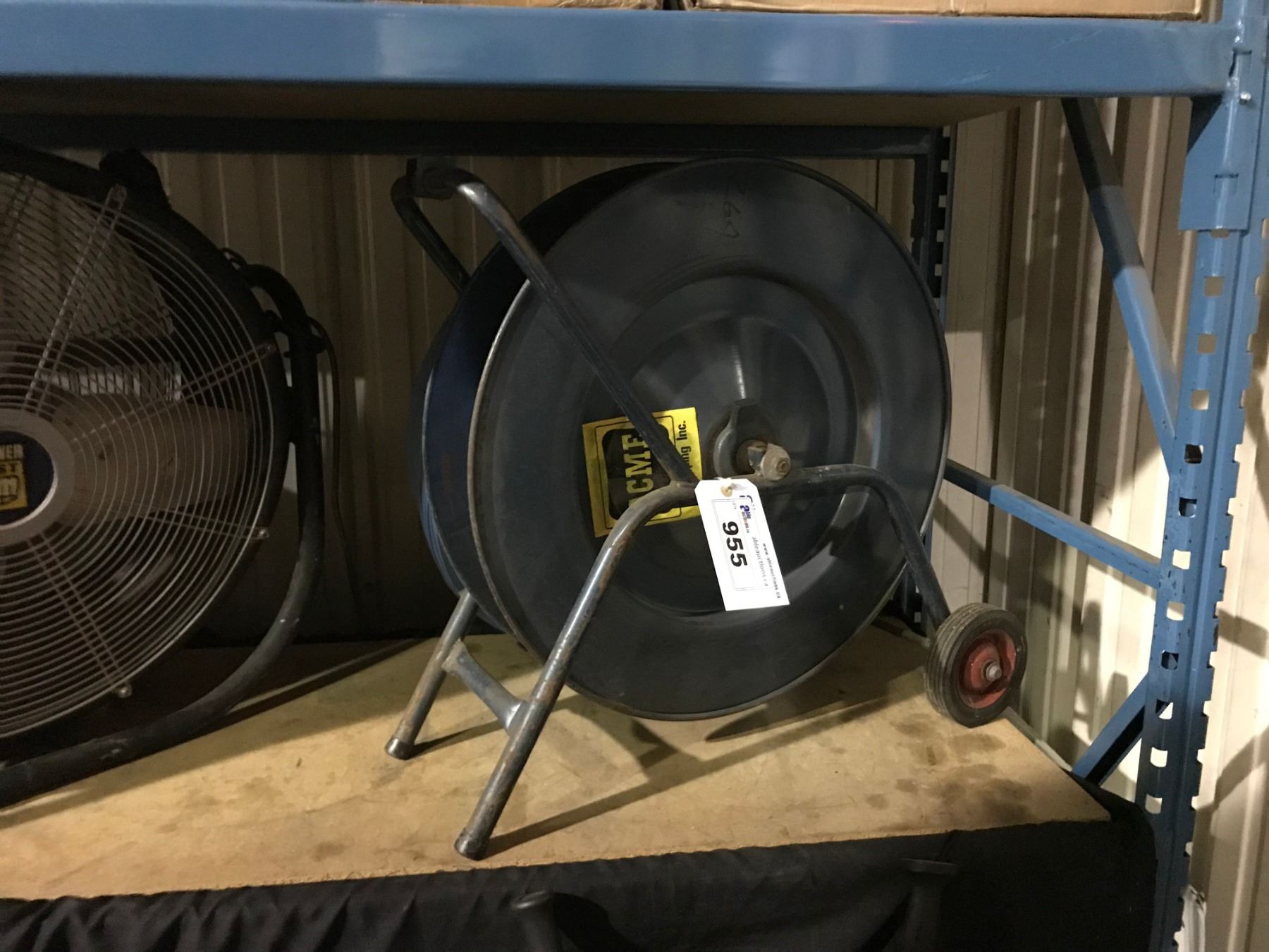BLUE ACME MOBILE BANDING CART WITH ROLL OF PLASTIC BANDING