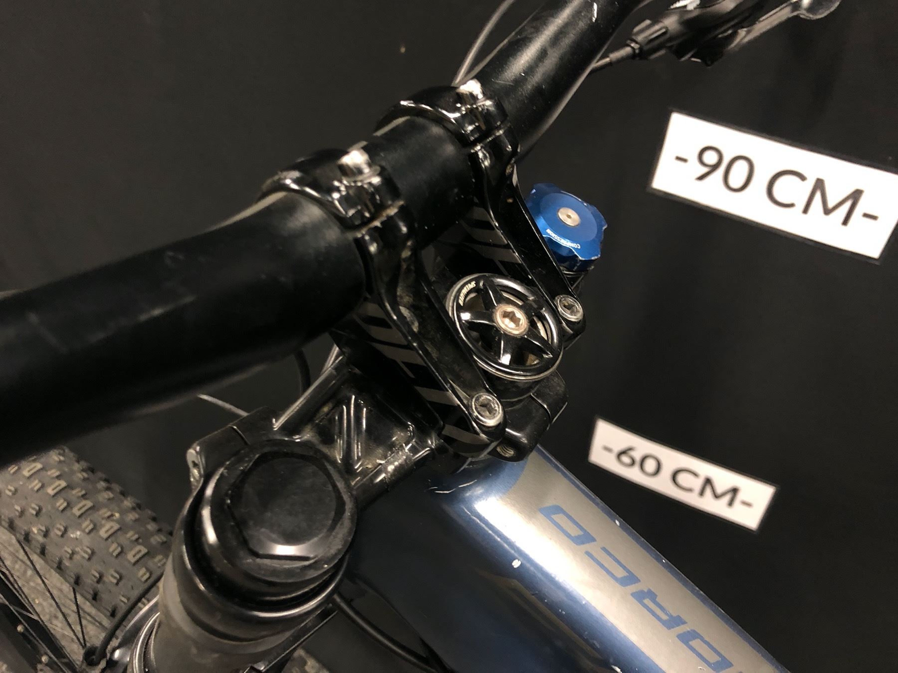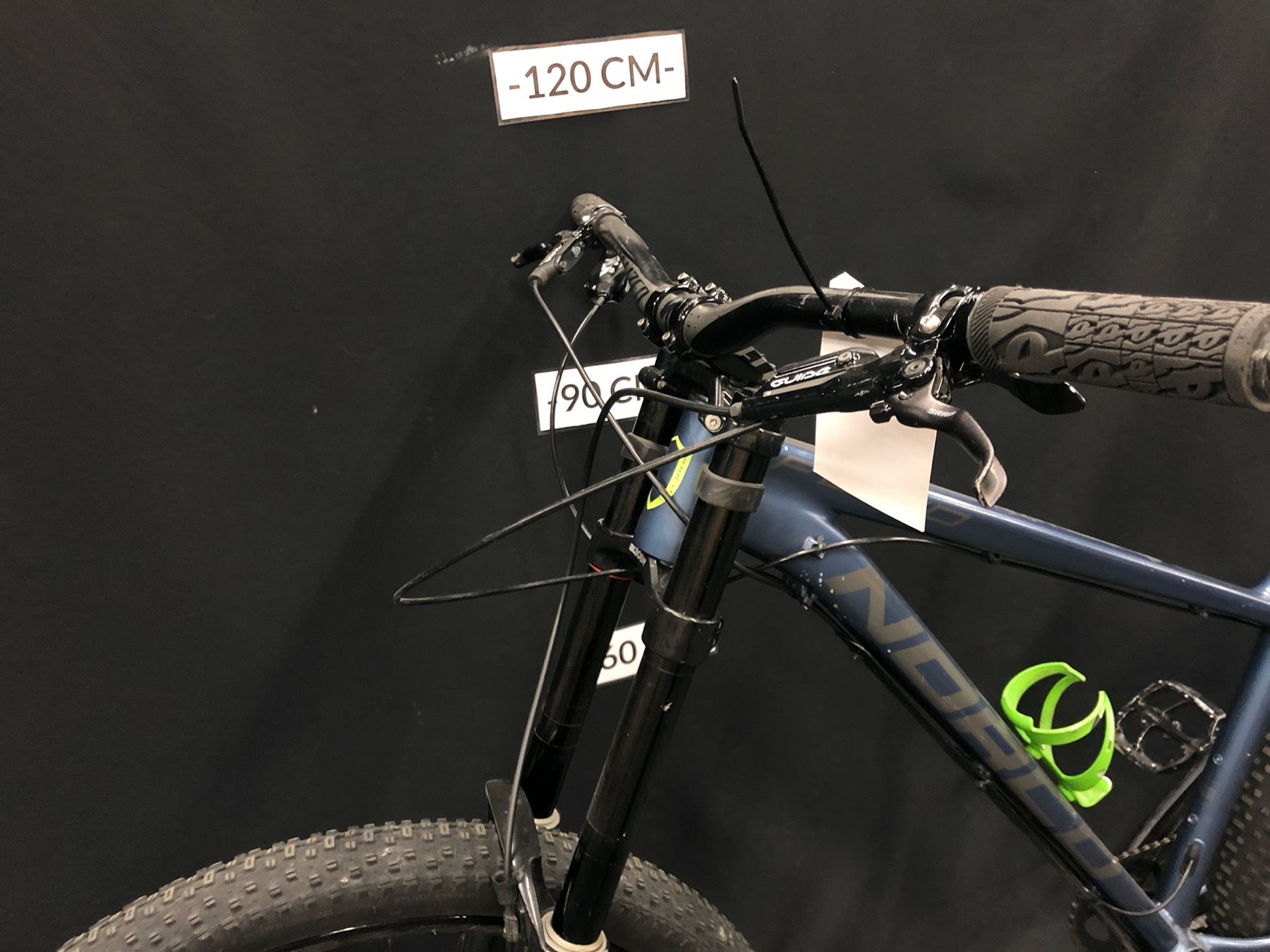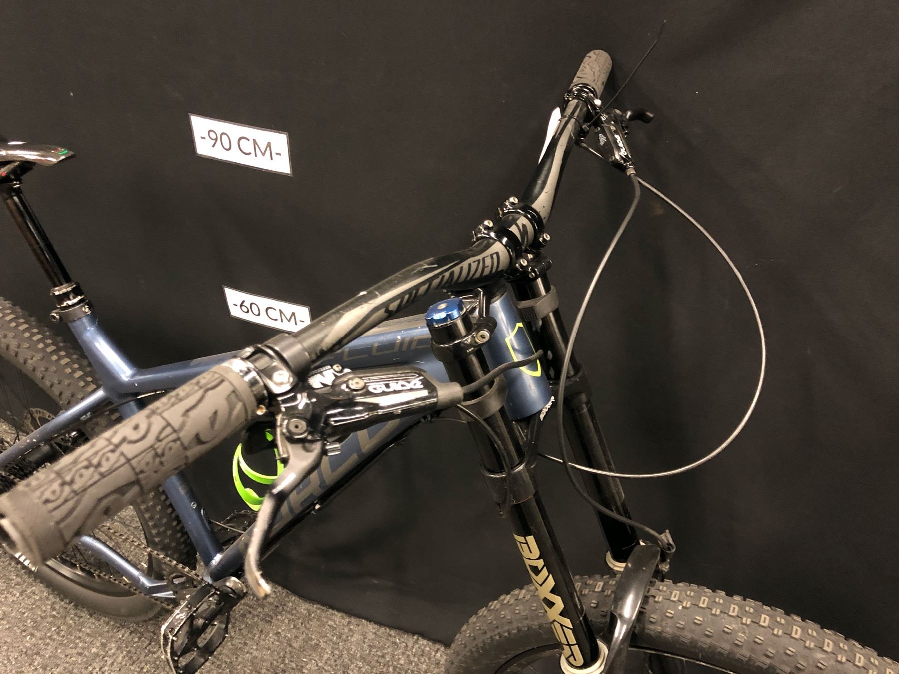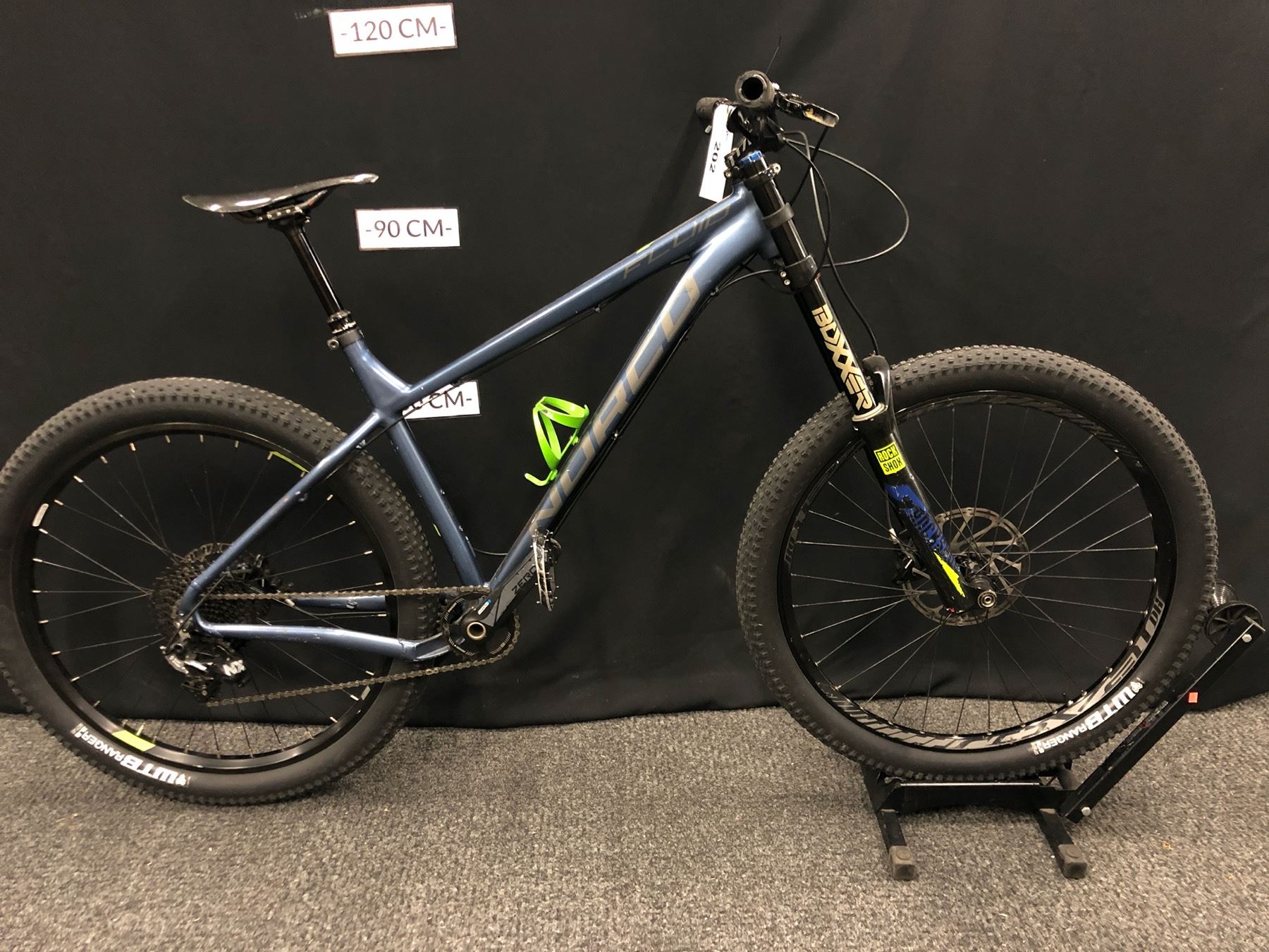 BLUE AND GREY NORCO FLUID 3+ 11 SPEED FRONT SUSPENSION MOUNTAIN BIKE WITH FRONT AND REAR HYDRAULIC DISC BRAKES, REMOTE SEAT HEIGHT ADJUSTMENT