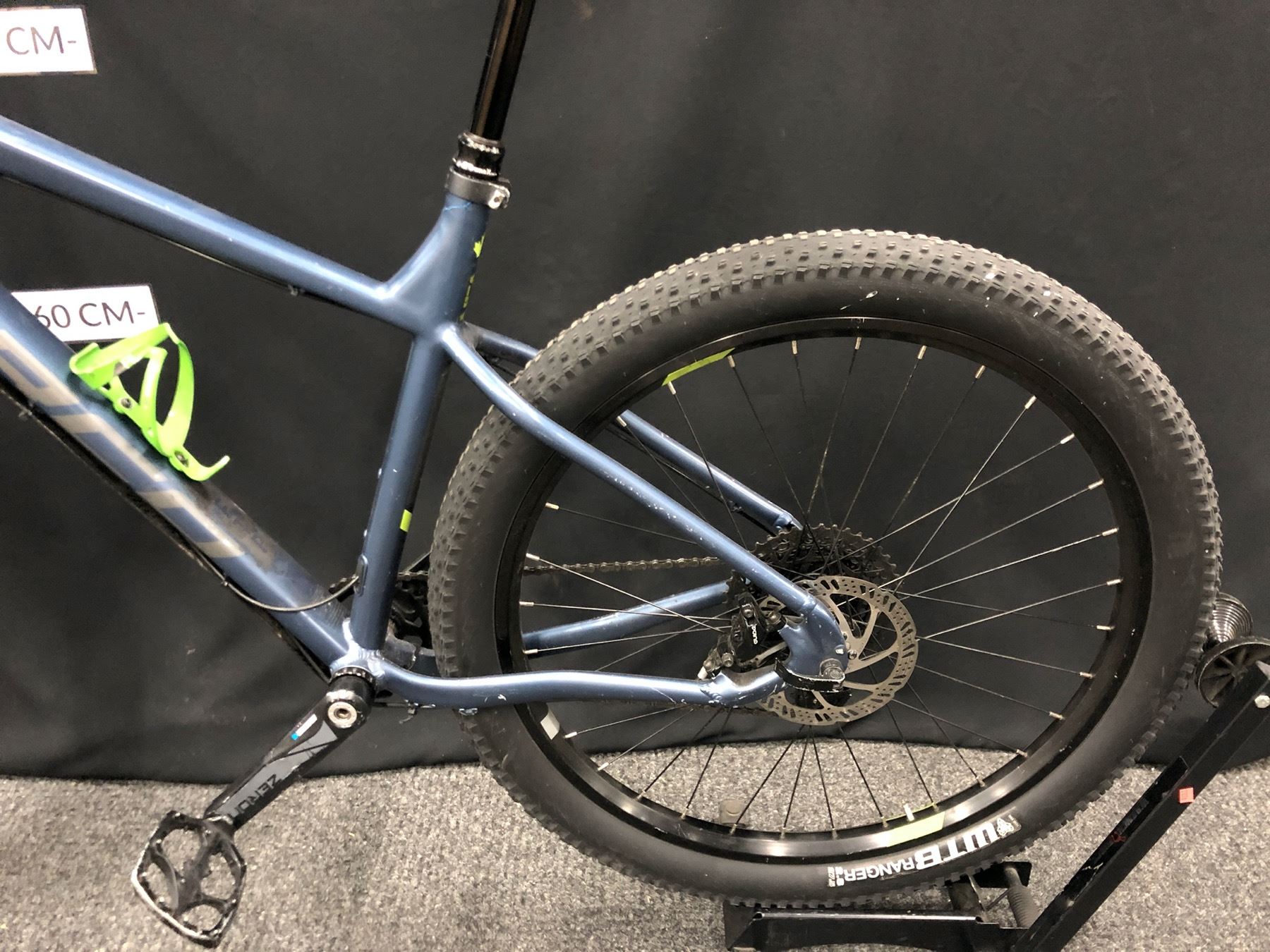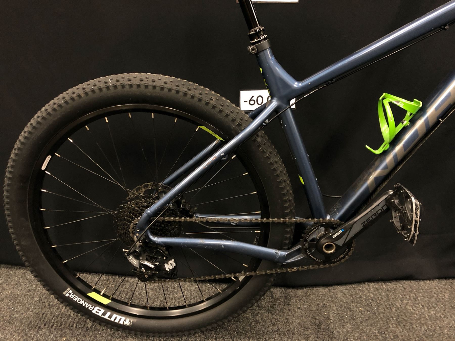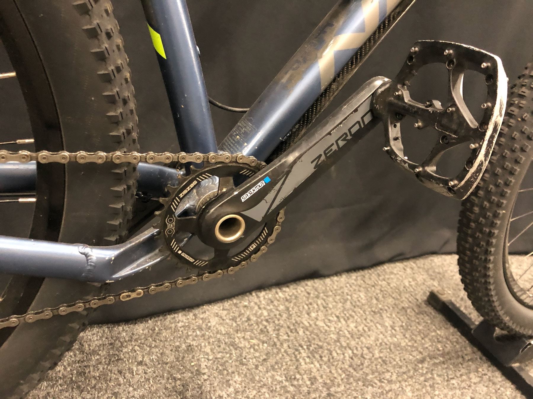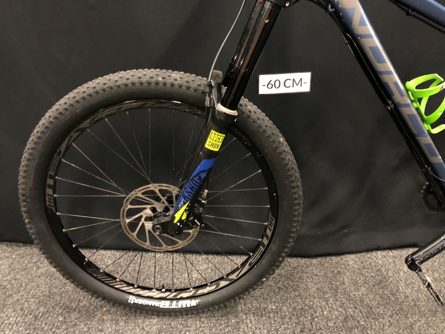 BLUE AND GREY NORCO FLUID 3+ 11 SPEED FRONT SUSPENSION MOUNTAIN BIKE WITH FRONT AND REAR HYDRAULIC DISC BRAKES, REMOTE SEAT HEIGHT ADJUSTMENT