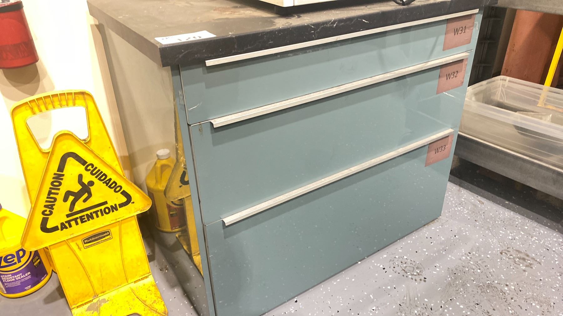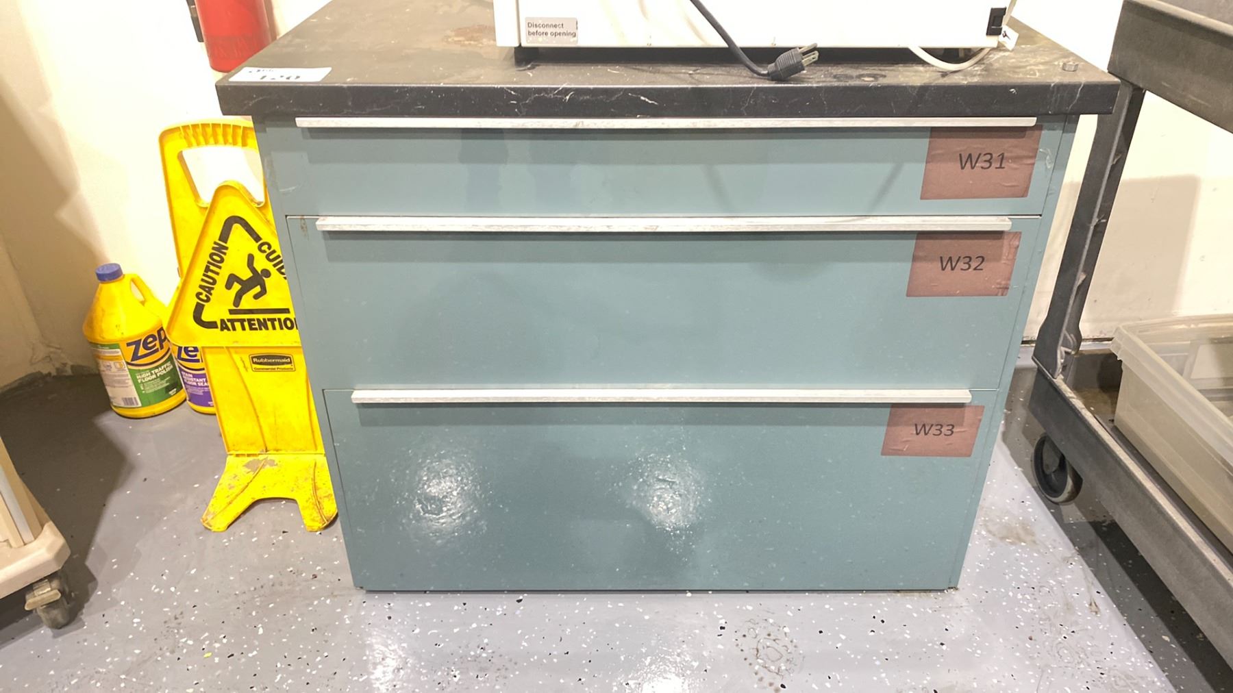 BLUE/ BLACK 3 DRAWER WORKBENCH 39"W X 26"D X 32"H *CONTENTS NOT INCLUDED*