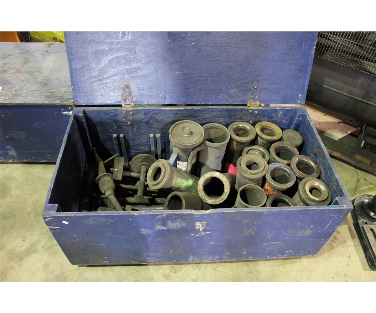 BLUE BOX OF HOSE STOPS AND PLUMBING TOOLS