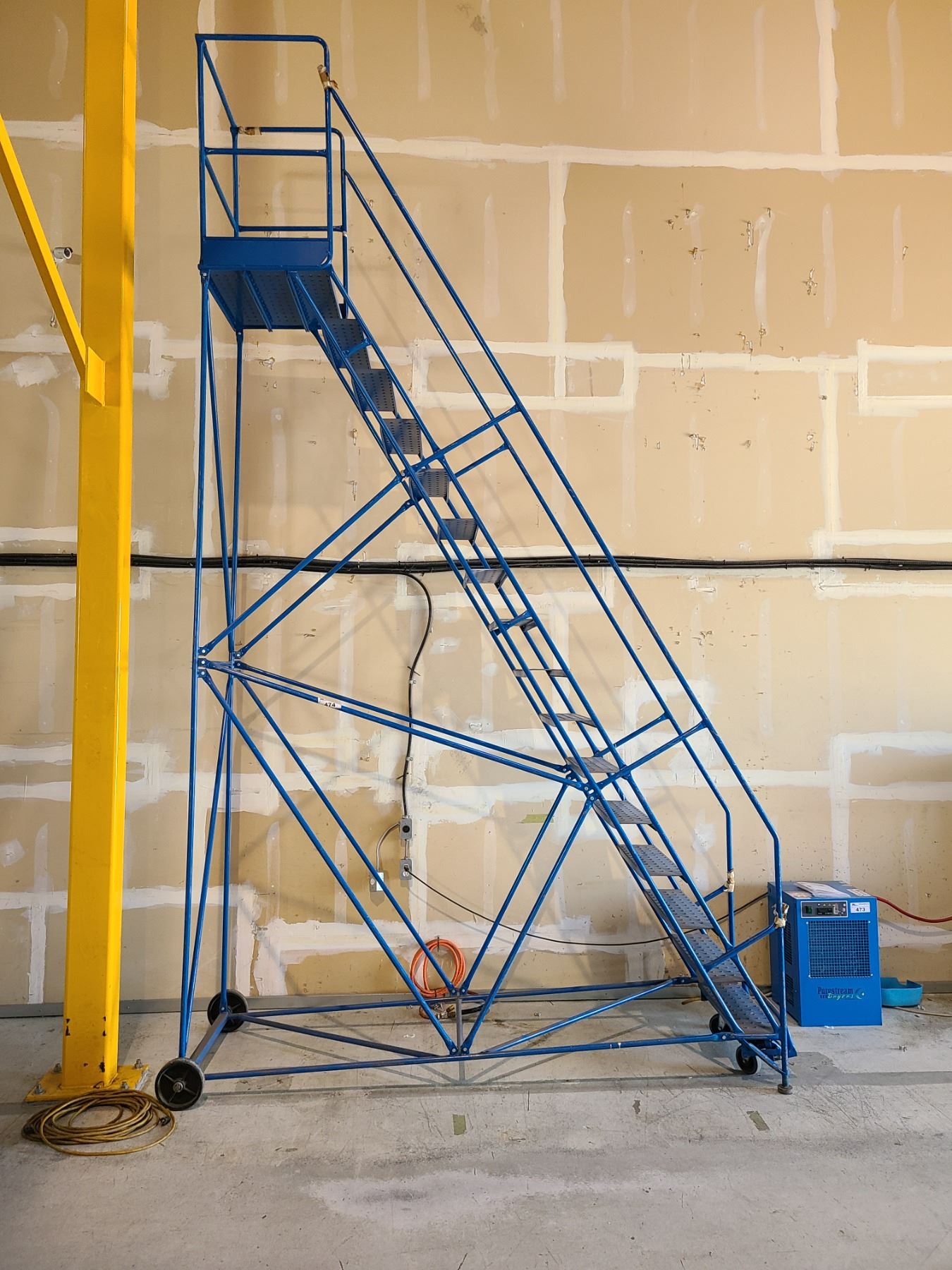 BLUE CANWAY MOBILE 16 STEP SHOP STAIR WITH 12' PLATFORM HEIGHT (OVERALL HEIGHT 15')