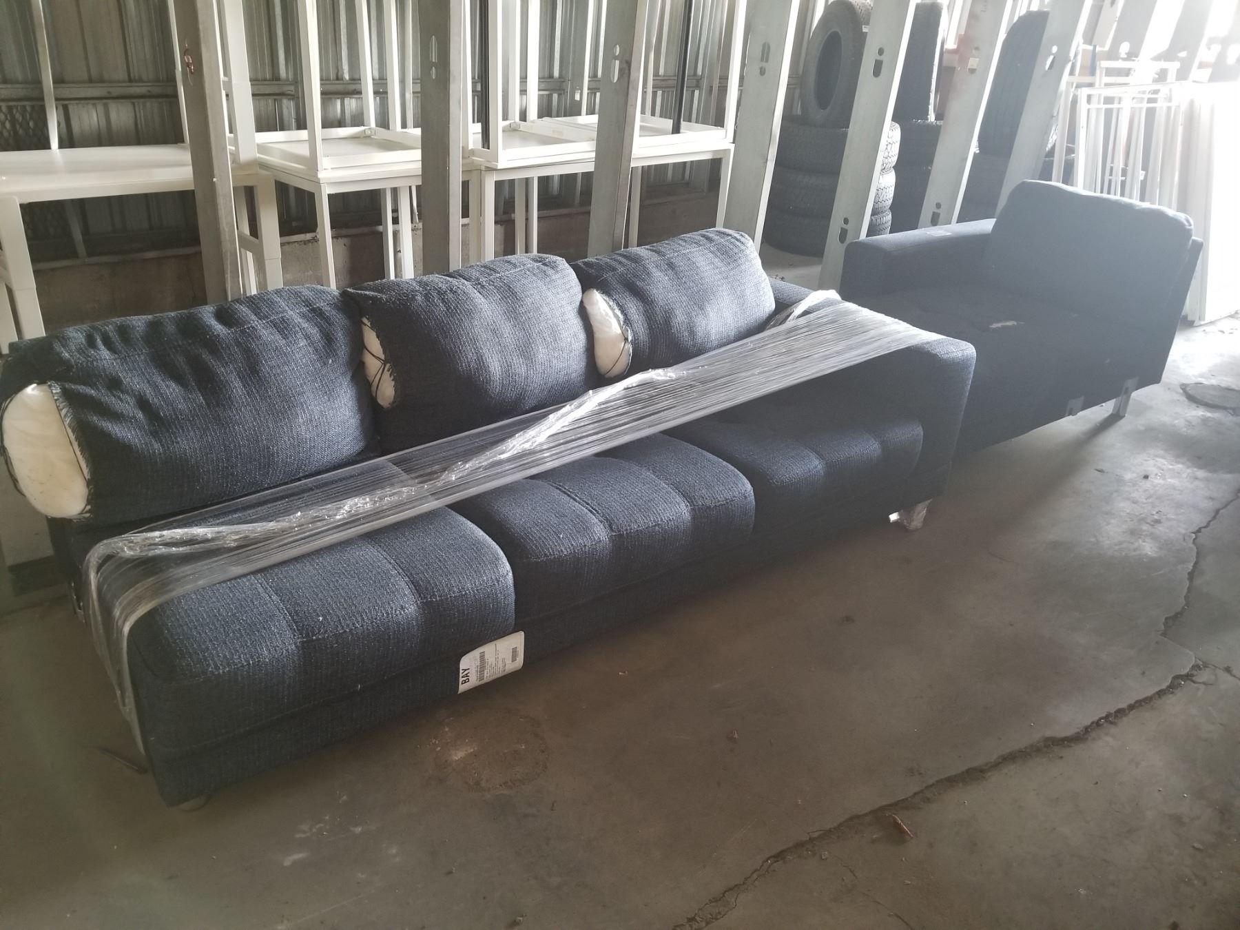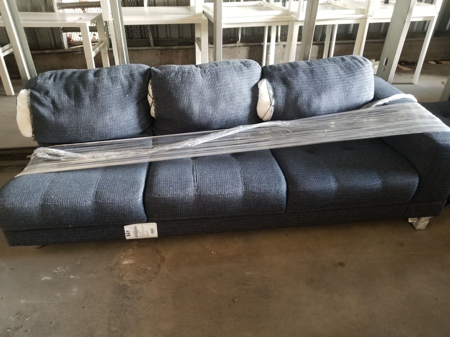 BLUE COUCH & CHASE LOUNGE (HAS COSMETIC DAMAGE)