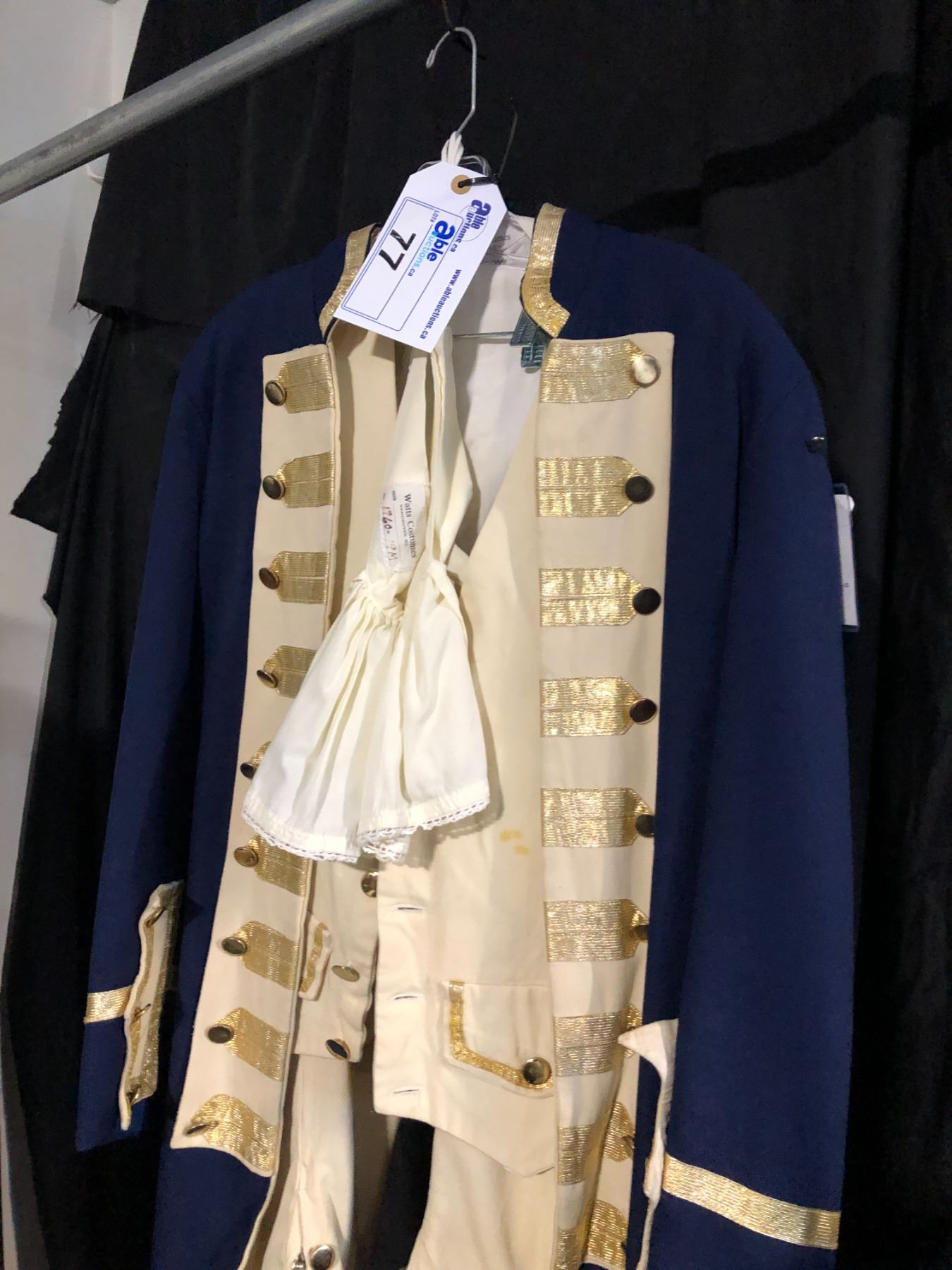 BLUE/CREAM FRENCH COLONIAL COSTUME, DAILY RENTAL $135.00