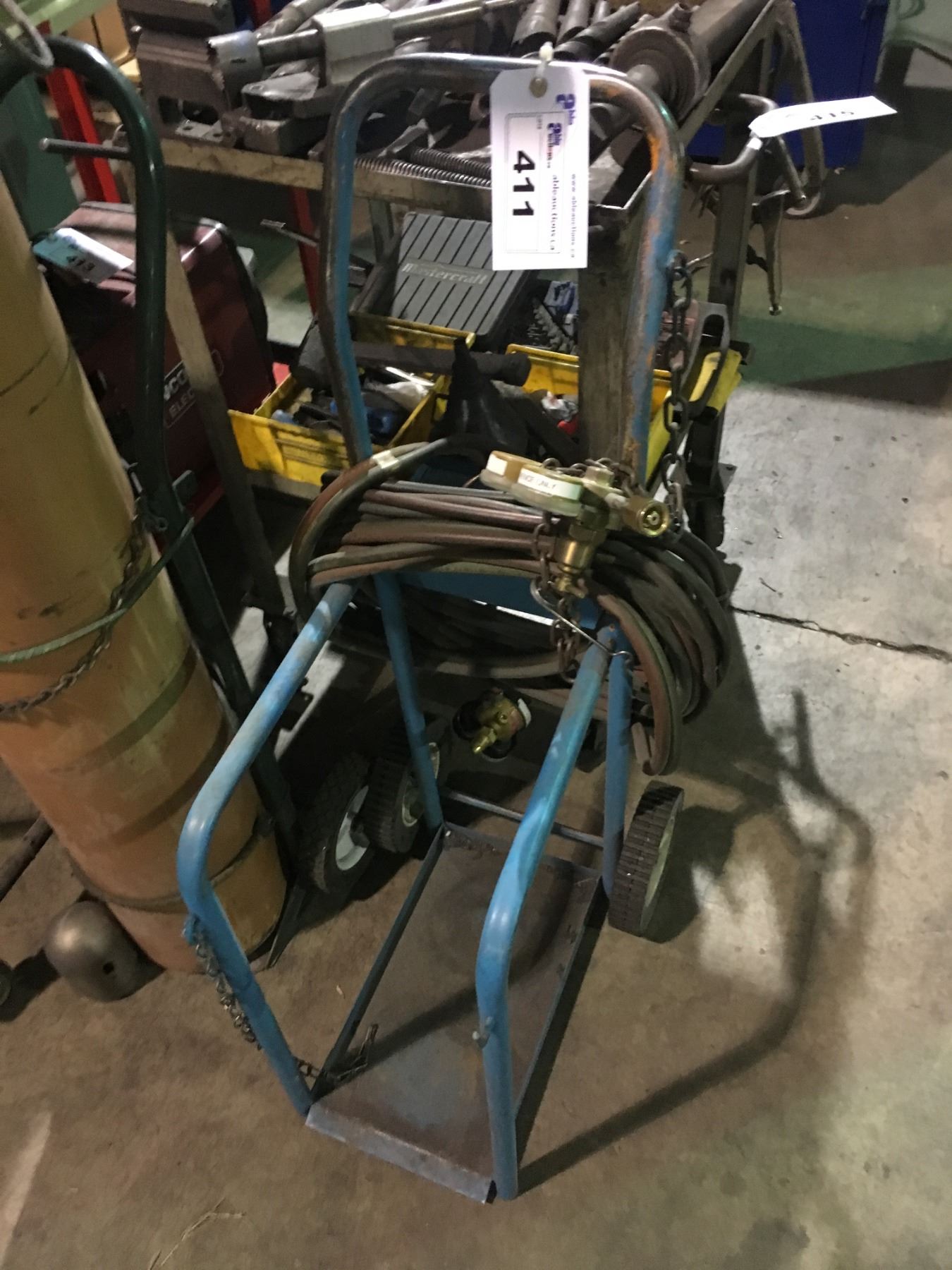 BLUE DOUBLE BOTTLE MOBILE TORCH CART WITH GAUGES, HOSES & TIPS