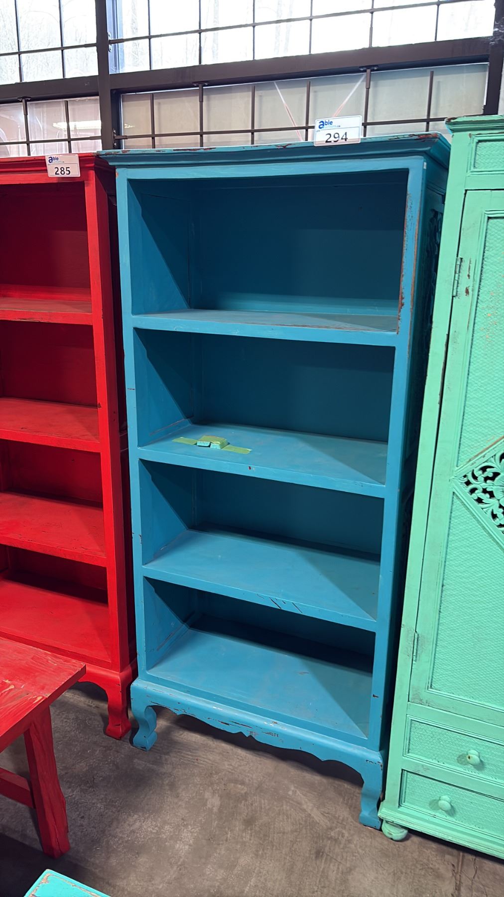 BLUE EXOTIC WOOD BOOKCASE 70 X 32"