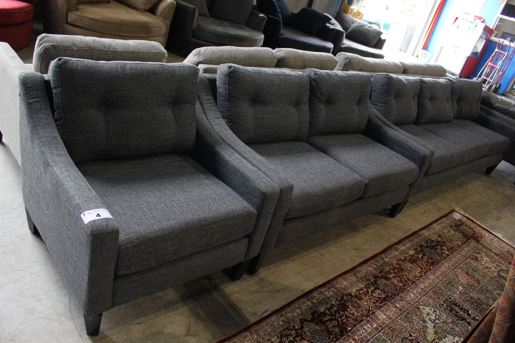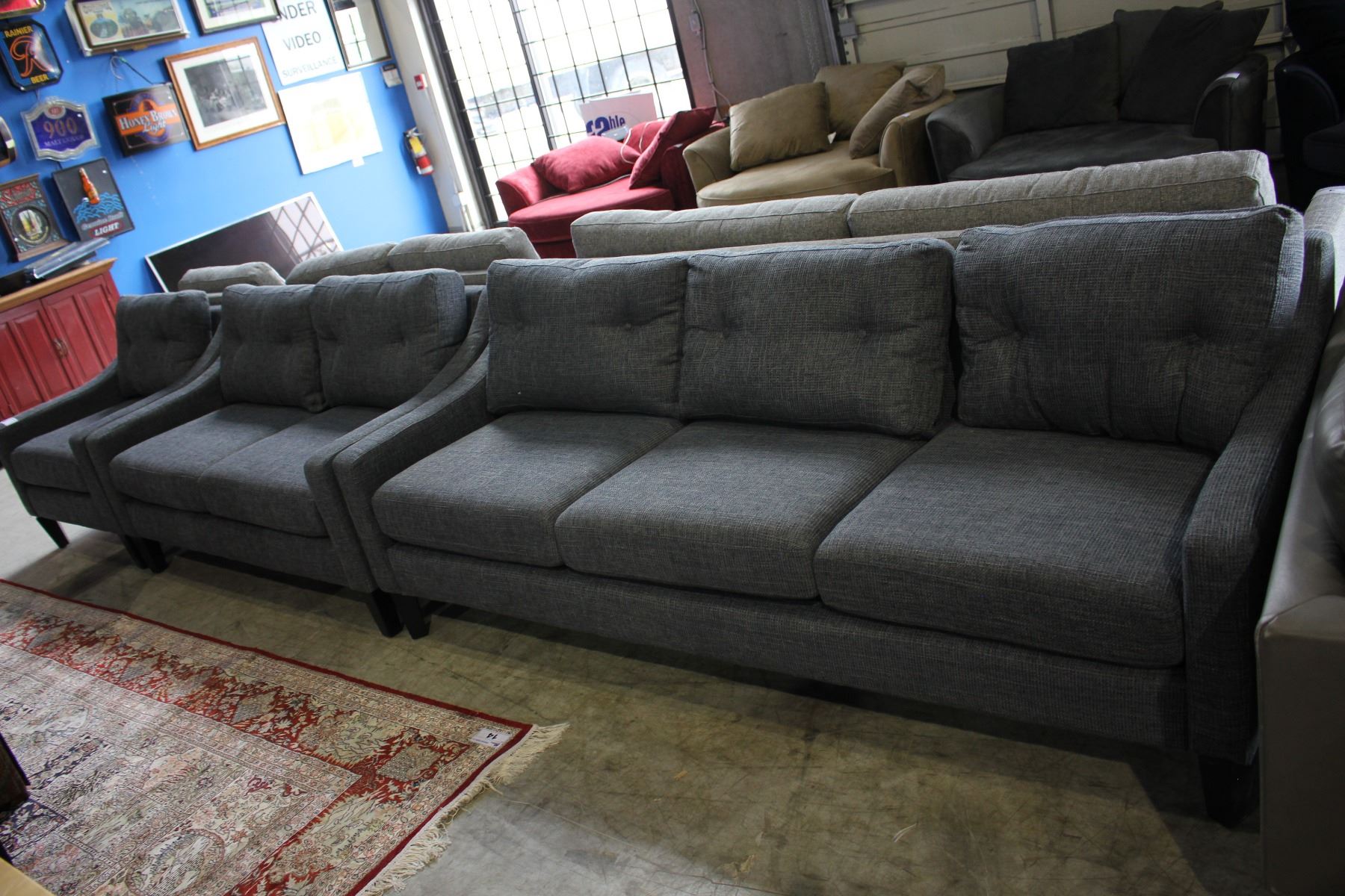 BLUE/GREY FABRIC 3 PIECE SOFA SET INCLUDING LOVESEAT AND ARMCHAIR