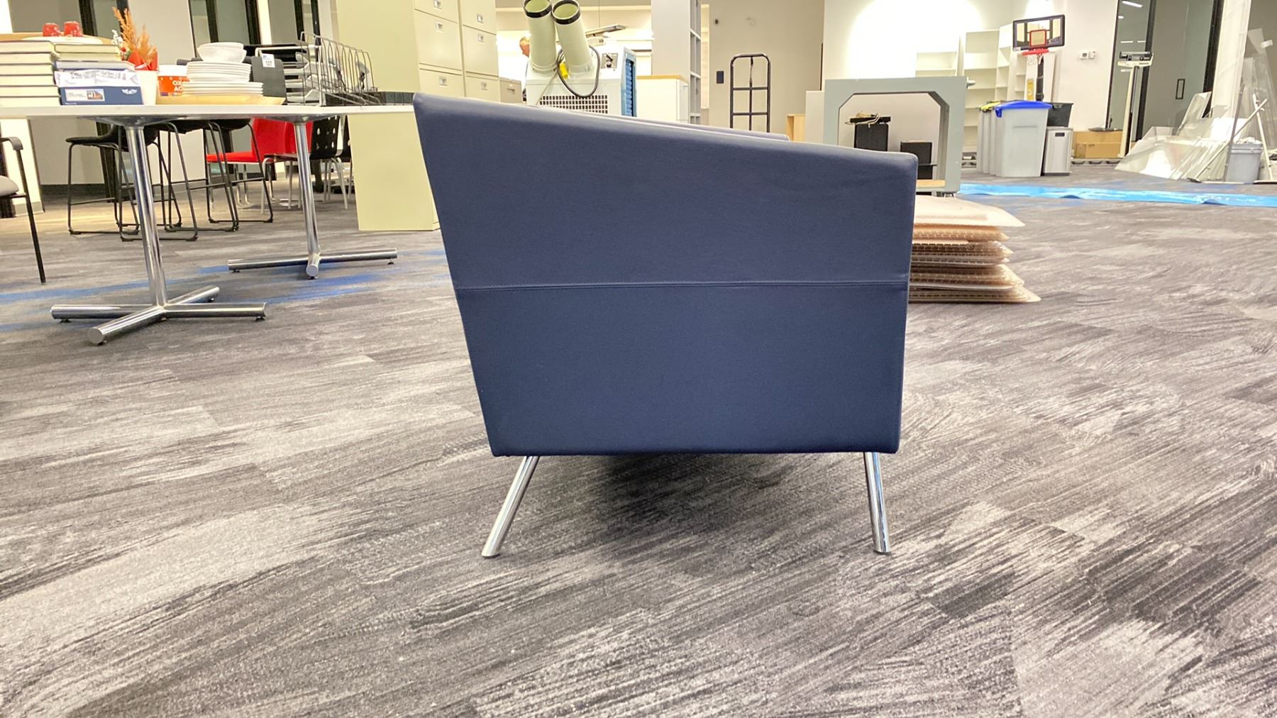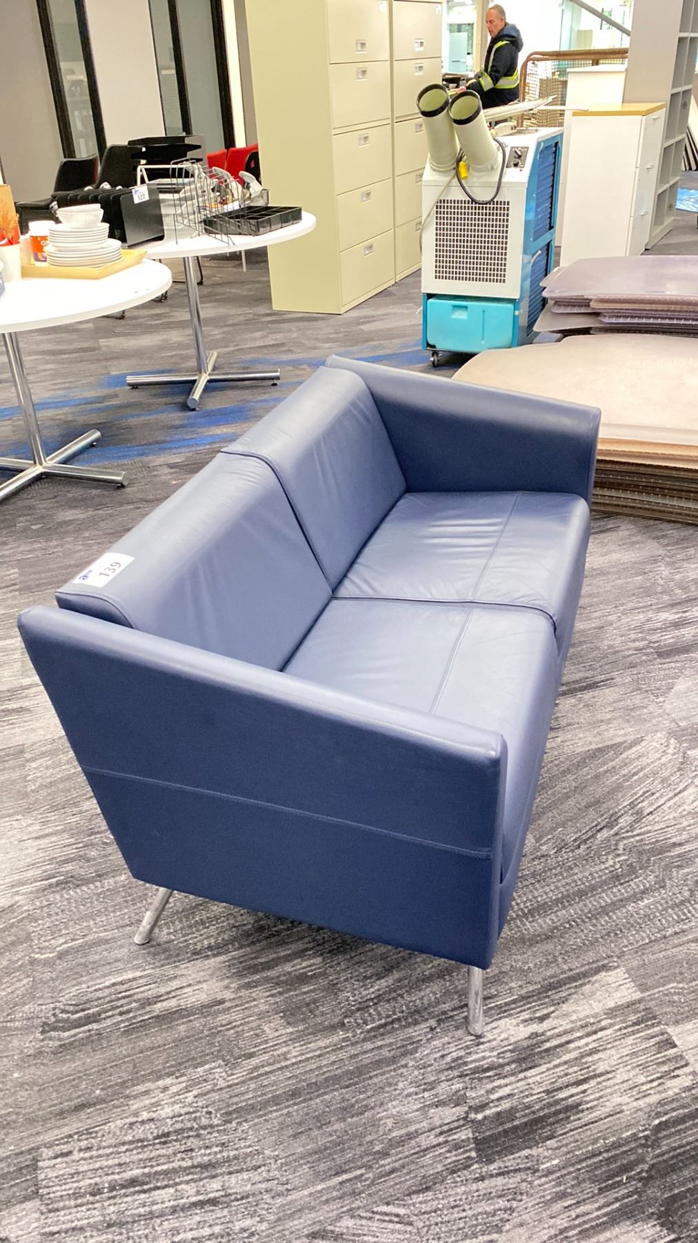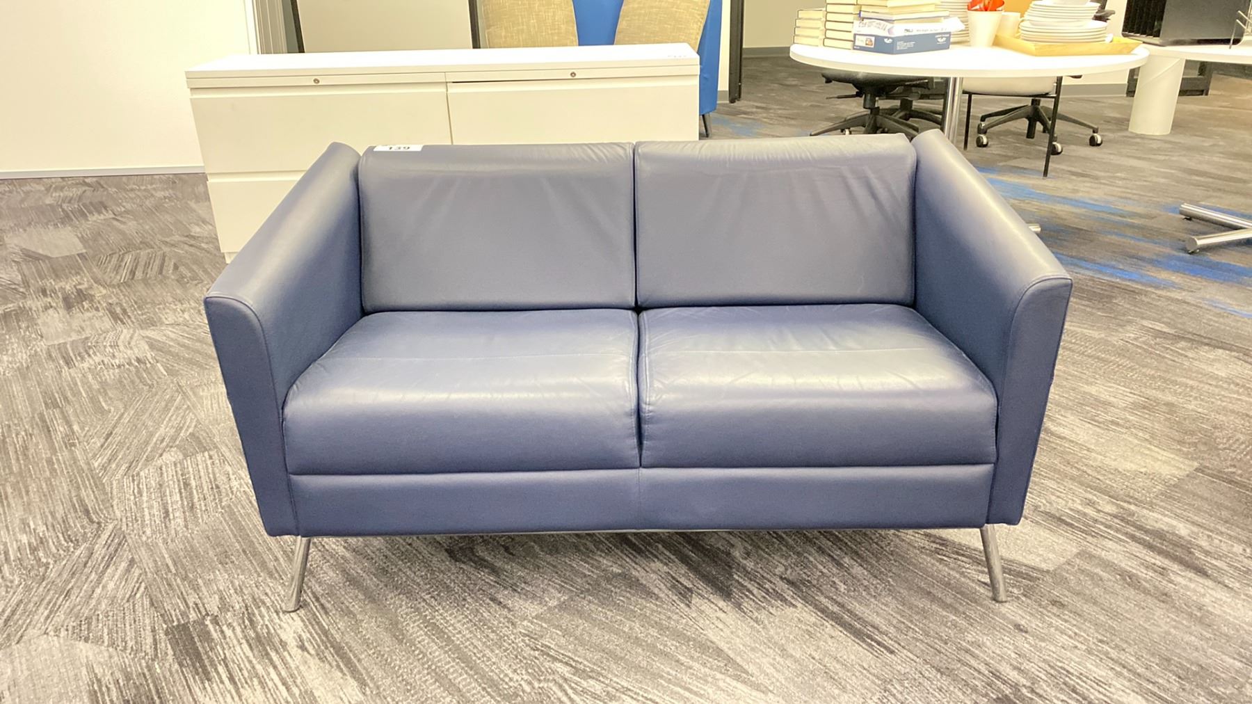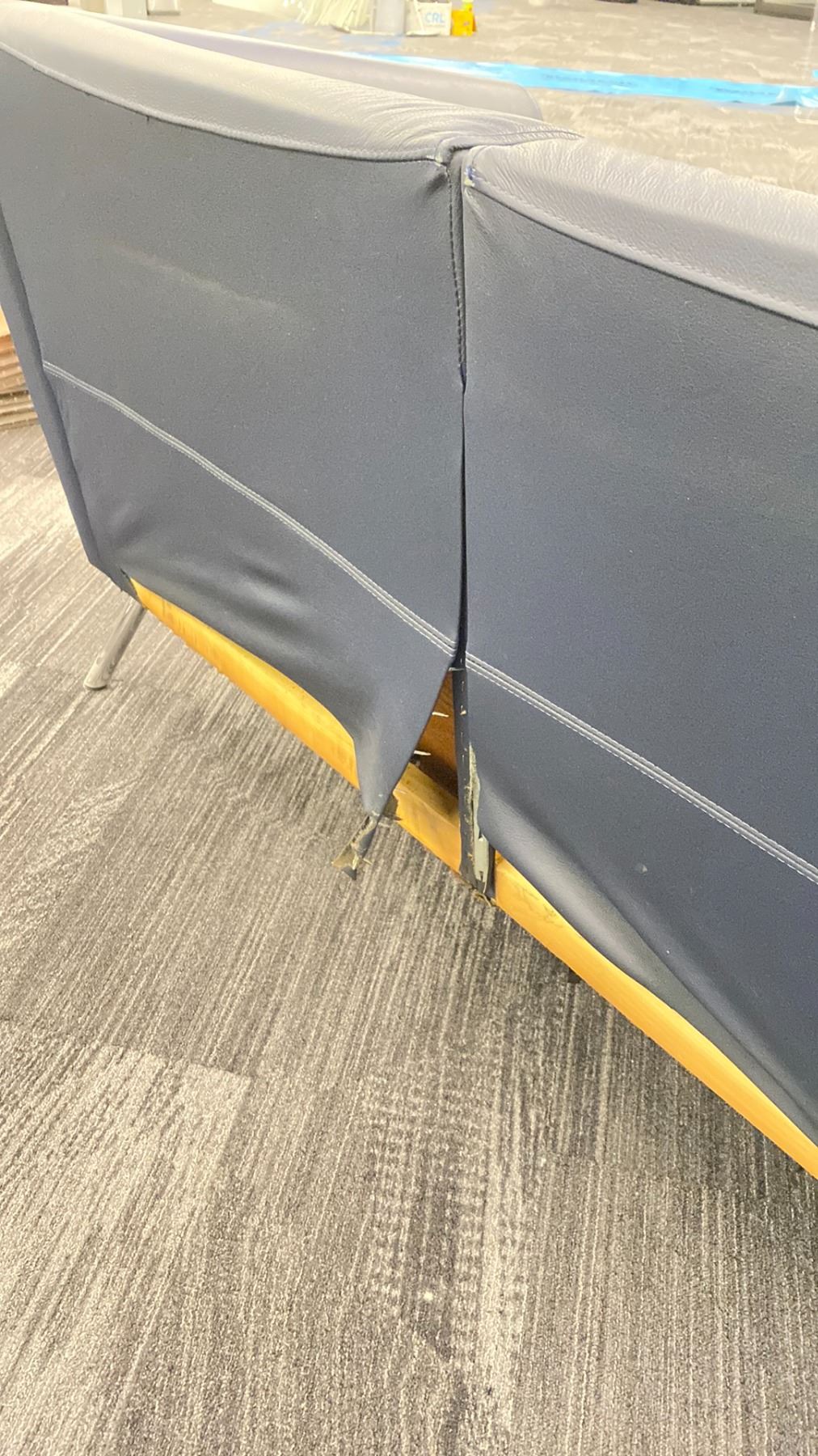 BLUE LEATHER LOVESEAT *LEATHER MATERIAL AT BACK NEEDS REPAIR*