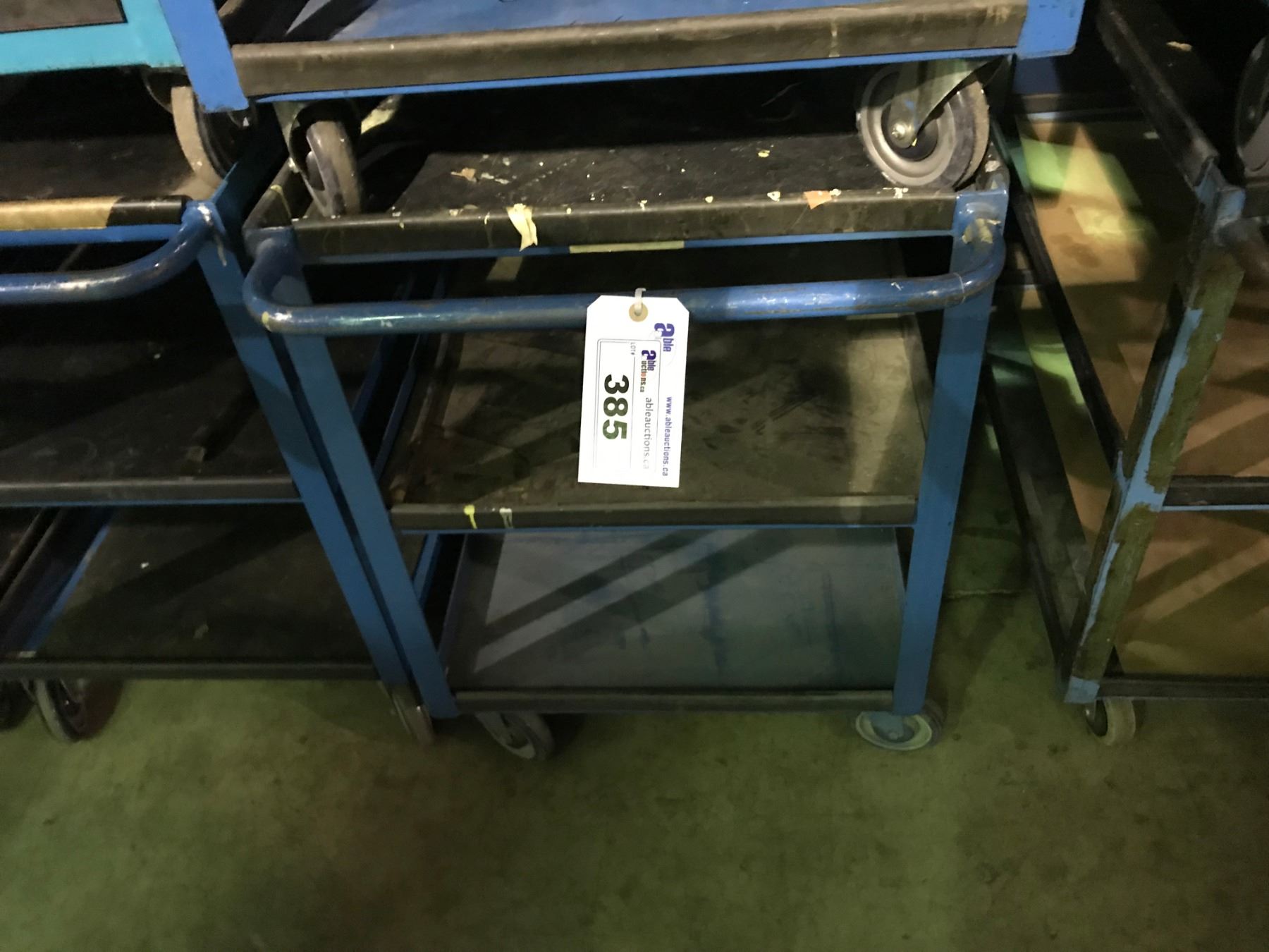 BLUE METAL 3 TIER MOBILE SHOP CART