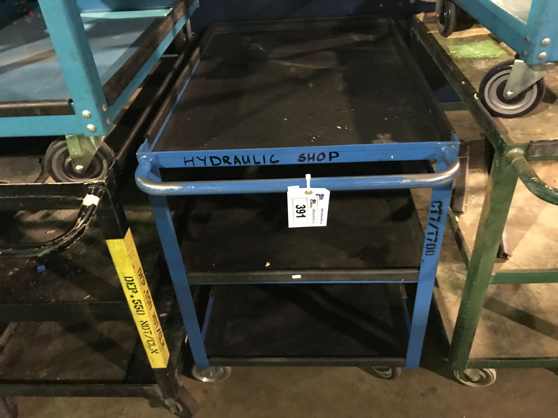 BLUE METAL 3 TIER MOBILE SHOP CART