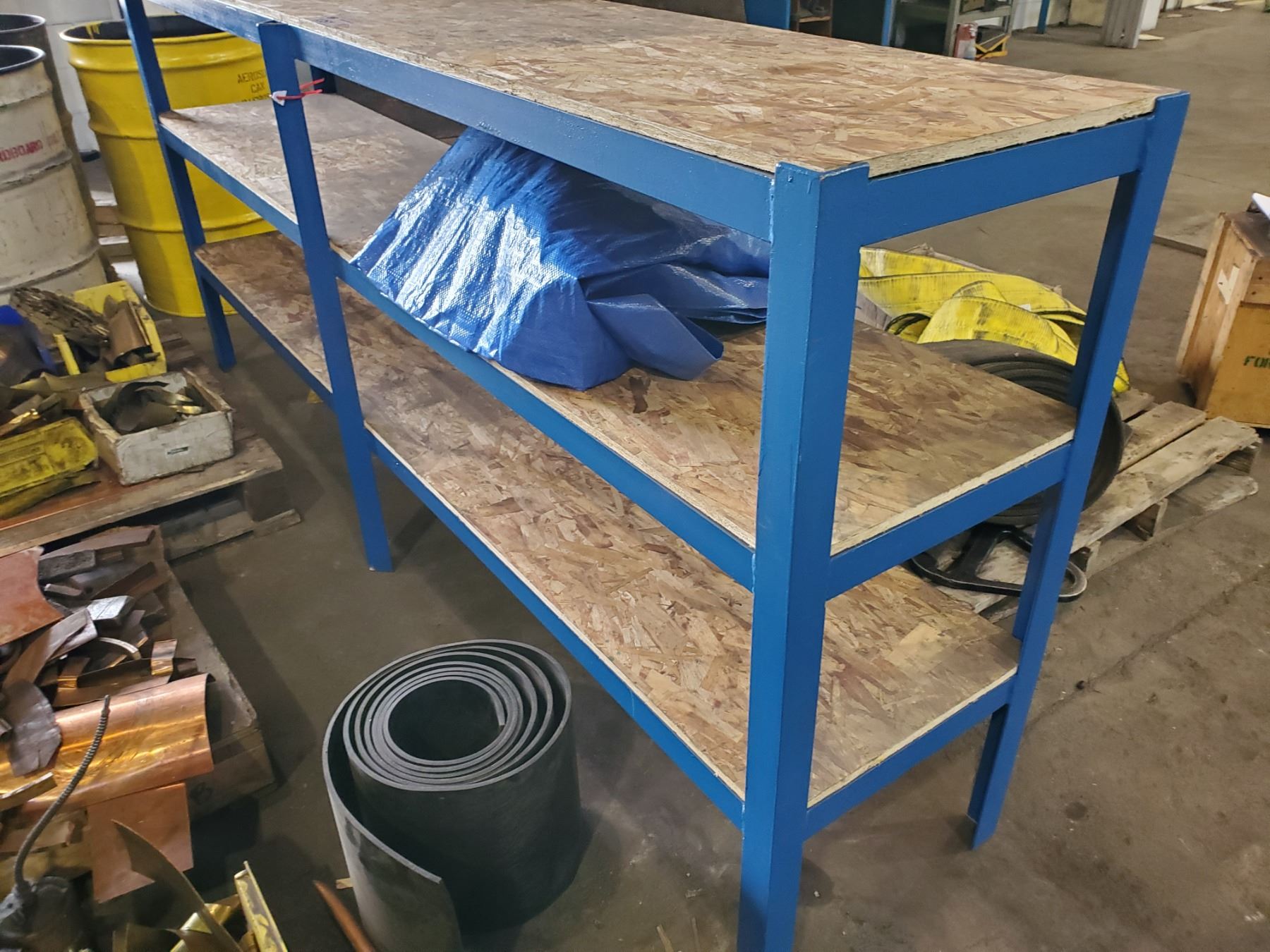 BLUE METAL 3 TIER SHELF UNIT 96"L X 18"W X 43"H