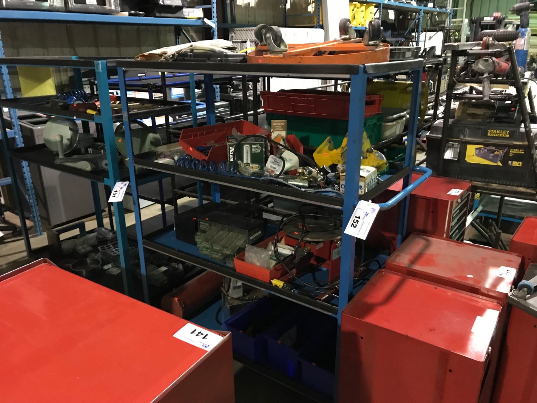 BLUE METAL 4 TIER MOBILE SHOP CART WITH ASSORTED TOOLS & CONTENTS