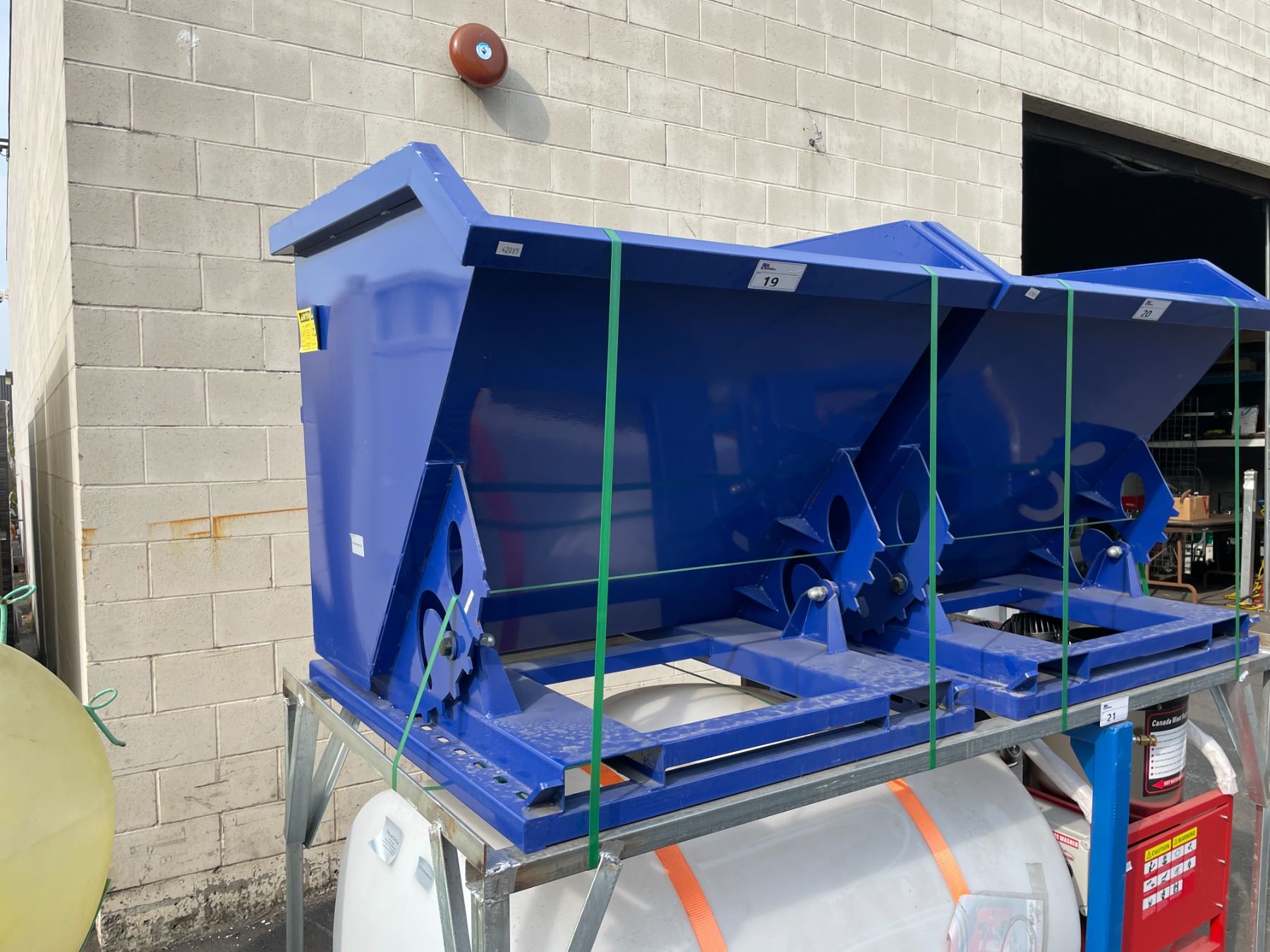 BLUE METAL 41"W X 43"D X 37"H INDUSTRIAL FORKLIFT DUMPING BIN ATTACHMENT