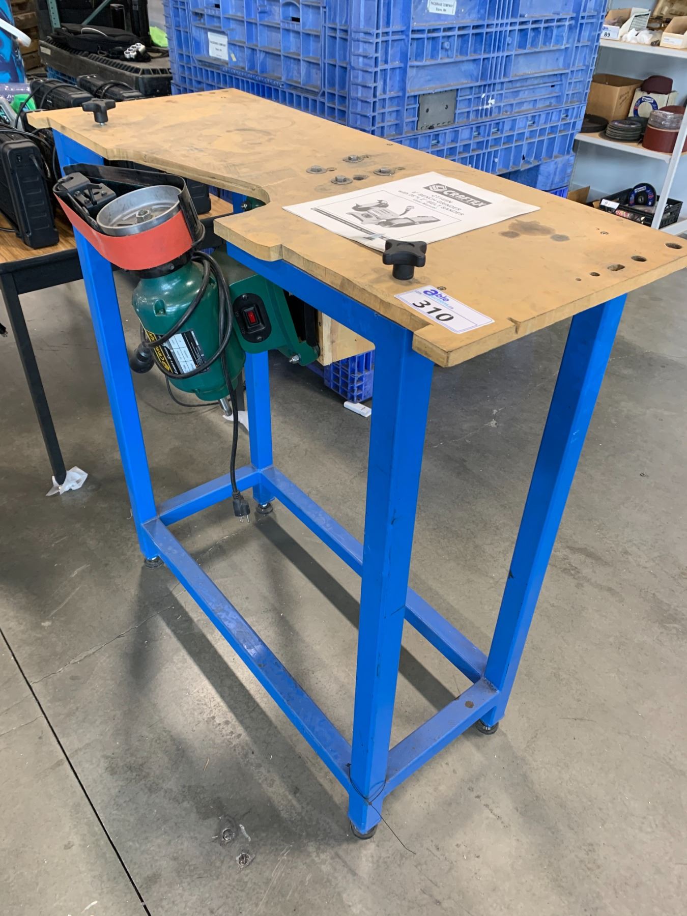 BLUE METAL GRINDER TABLE AND CRAFTEX GRINDER WITH BROKEN BASE