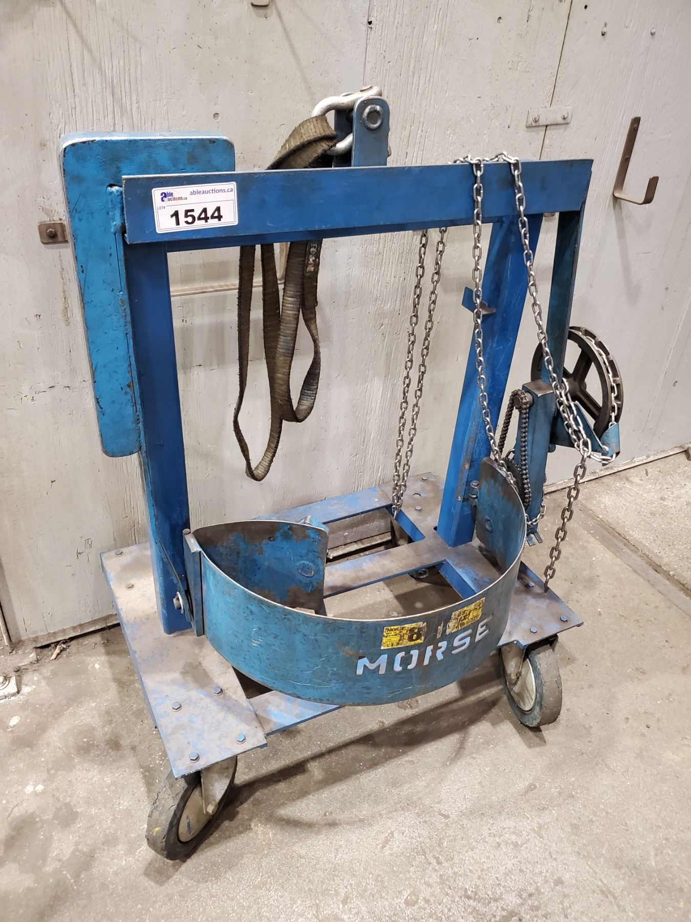 BLUE MORSE MOBILE BARREL DUMPER *CANNOT REMOVE UNTIL FEB 26TH*