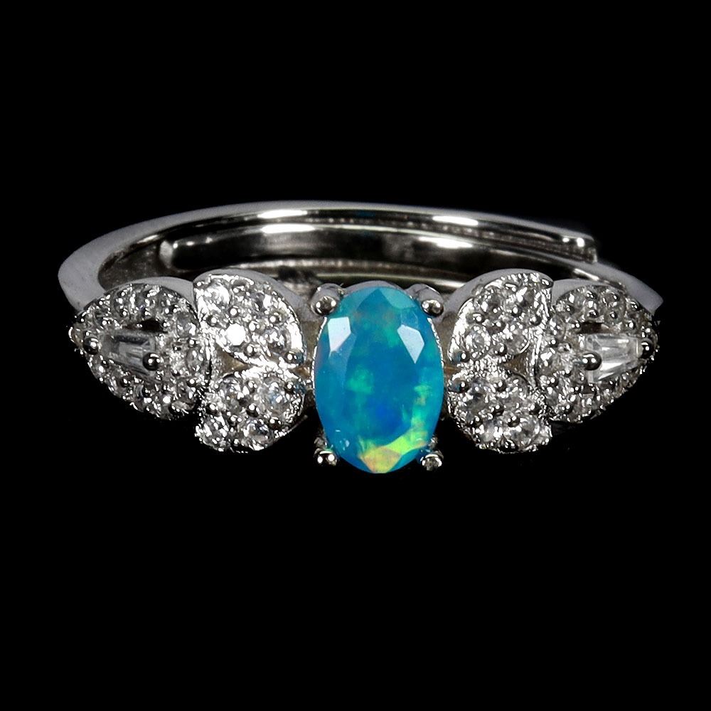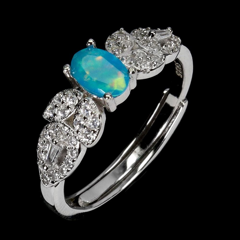 BLUE OPAL RING IN 14K WHITE GOLD-PLATED 925 STERLING SILVER (SIZE 7) REPLACEMENT VALUE CAD 375 – DIGITAL CERTIFICATE