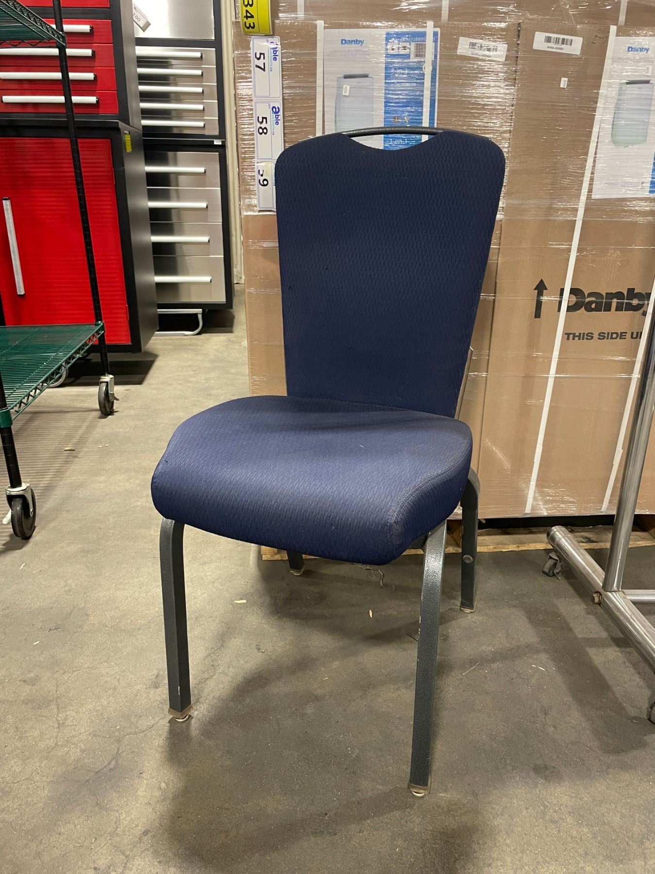 BLUE PADDED METAL FRAMED COMMERCIAL STACKING BANQUET CHAIR