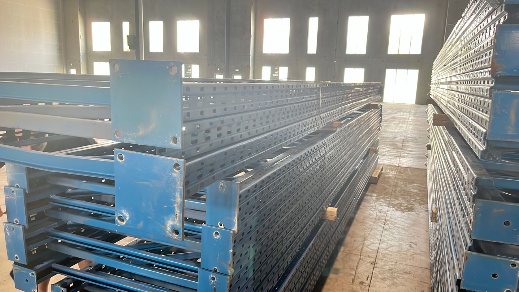 BLUE PALLET RACKING UPRIGHTS (3 PCS.) - APPROX. 24'H X 42"W WITH 8" X 8" X 1/4" BASES