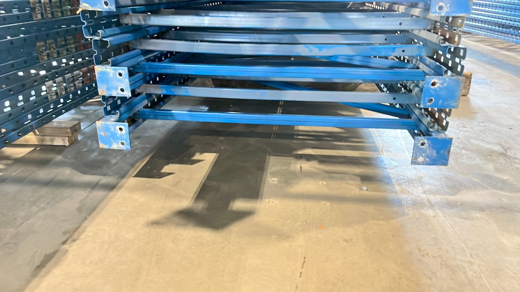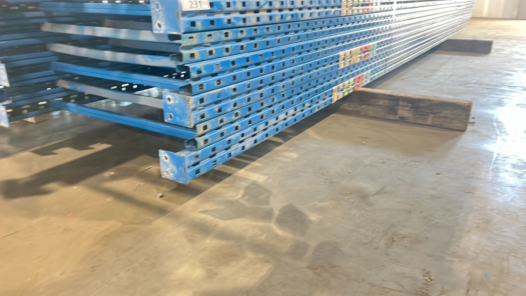 BLUE PALLET RACKING UPRIGHTS (6 PCS.) - APPROX. 20'H X 42"W WITH 3 1/2" X 4" X 1/8" BASES