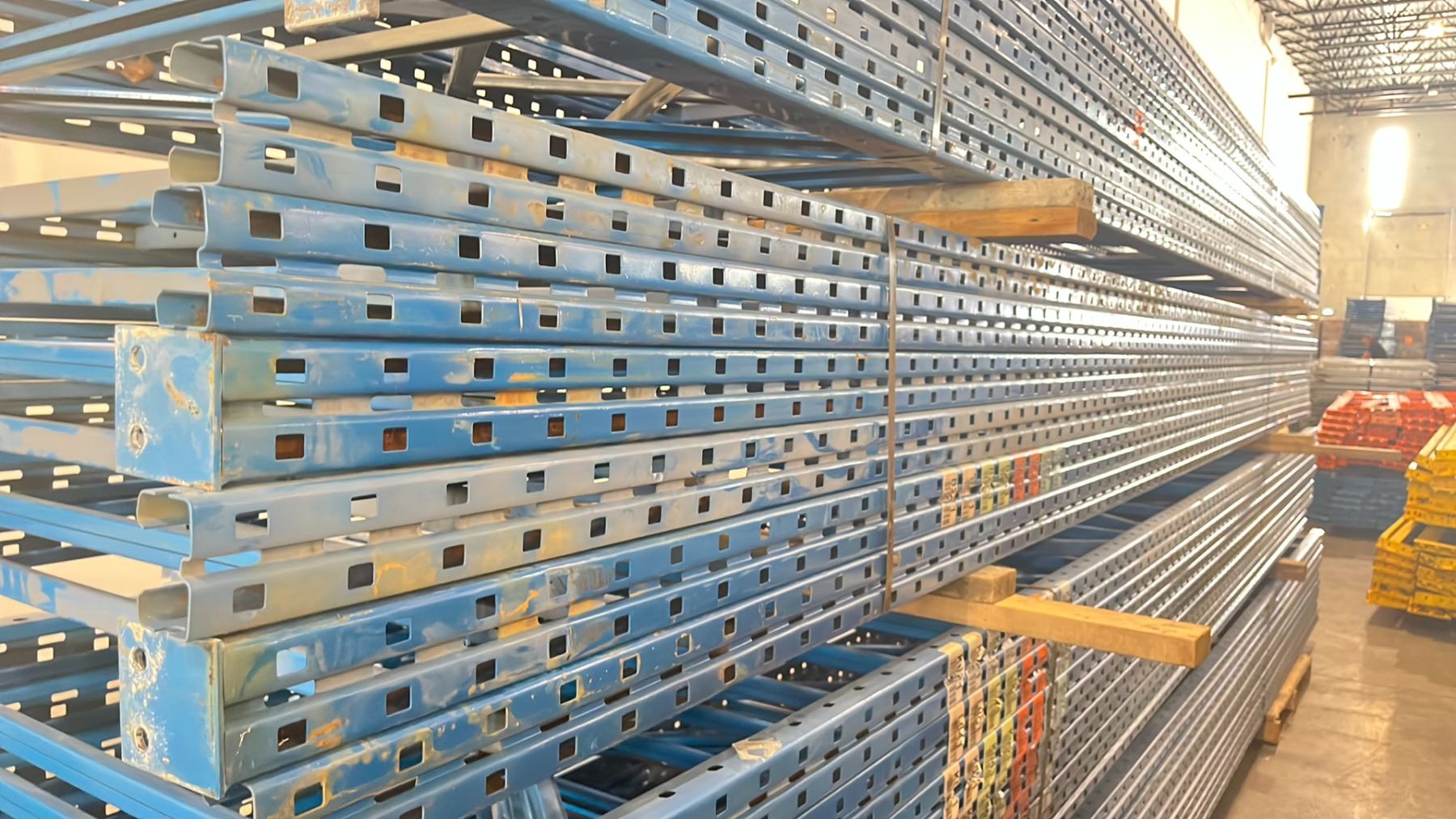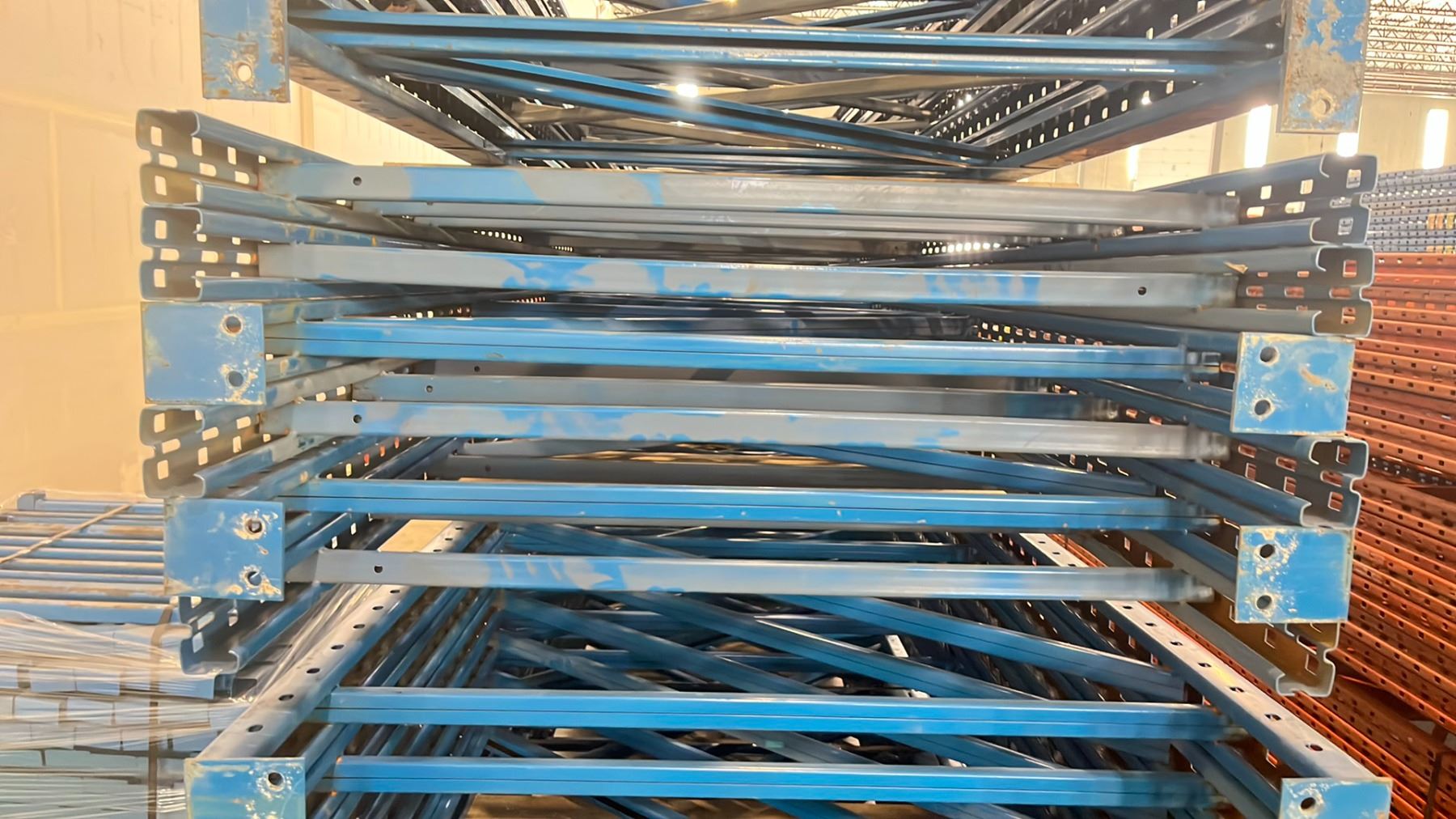 BLUE PALLET RACKING UPRIGHTS (6 PCS.) - APPROX. 20'H X 42"W WITH 4" X 3 1/2" X 1/8" BASES