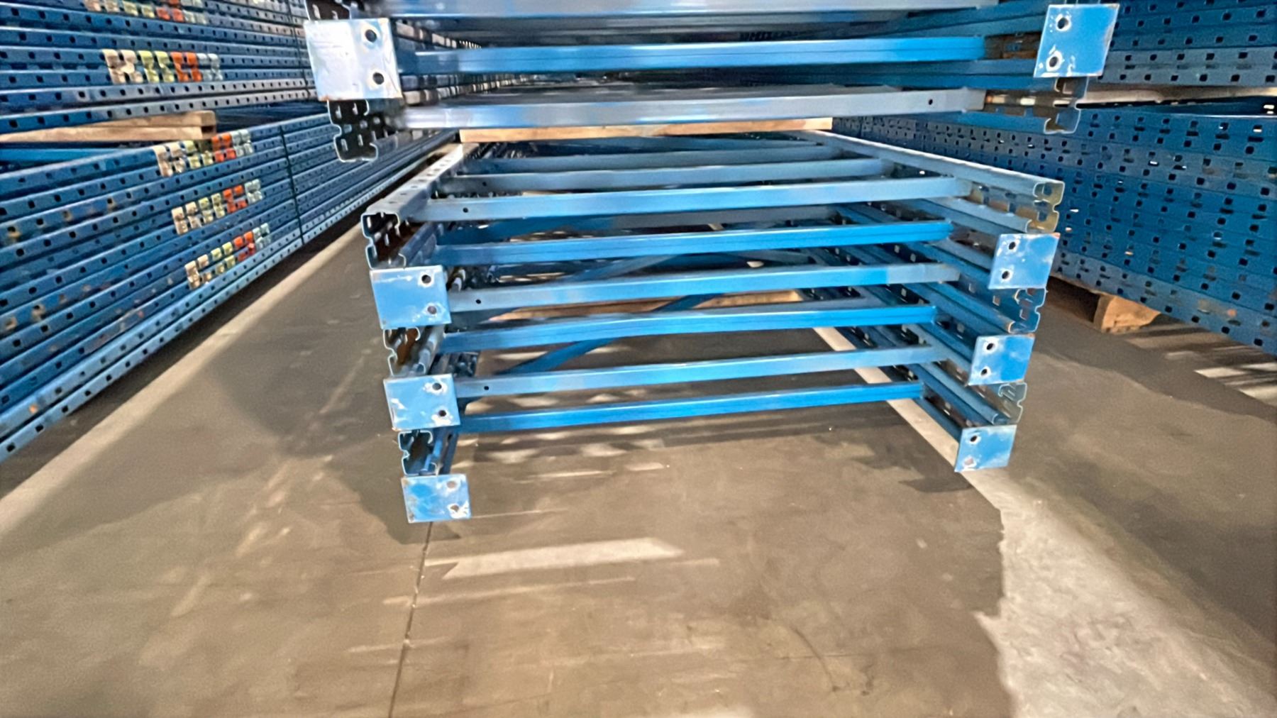 BLUE PALLET RACKING UPRIGHTS (6 PCS.) - APPROX. 21'H X 42"W WITH 4" X 3 1/2" X 1/8" BASES