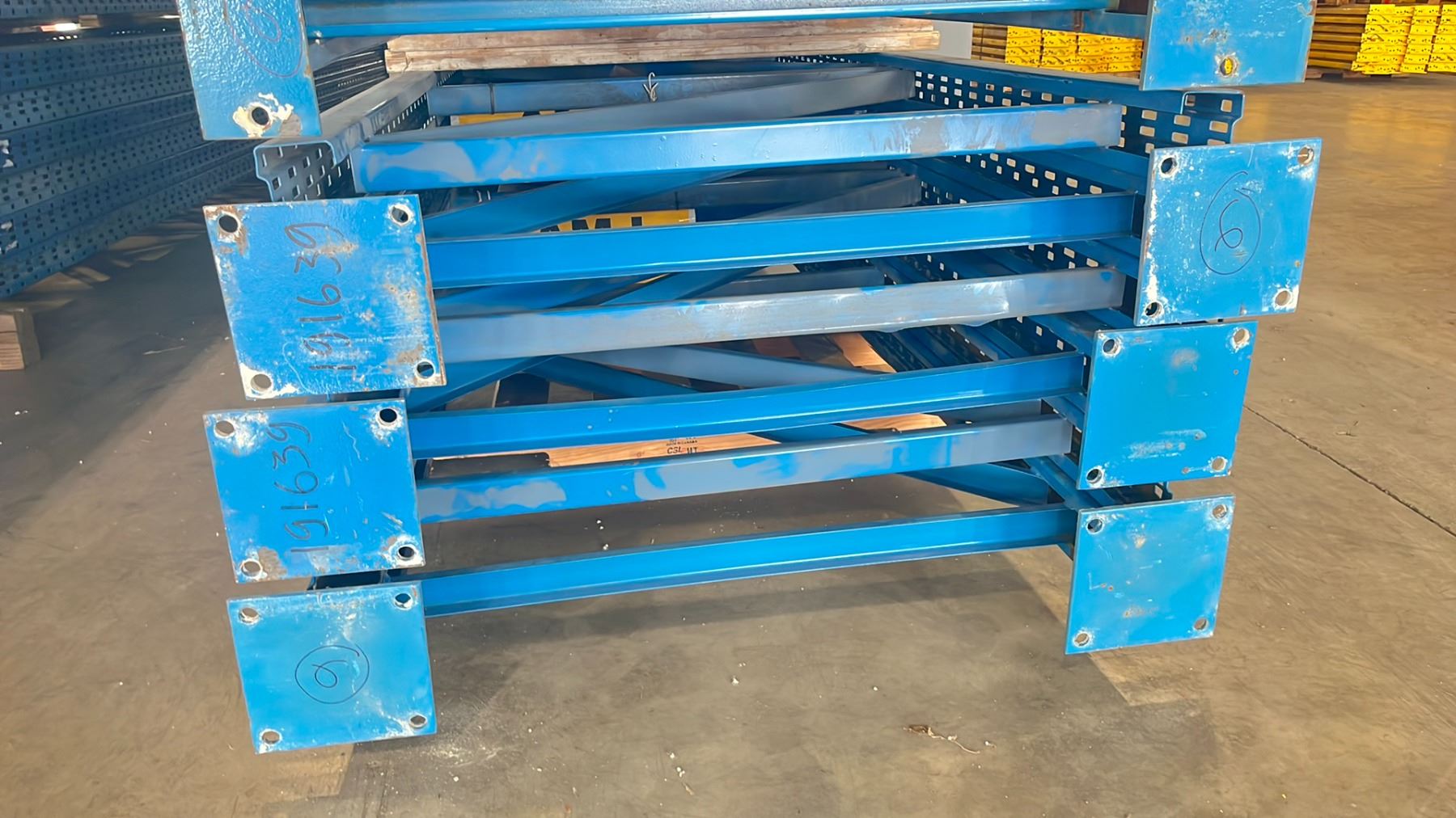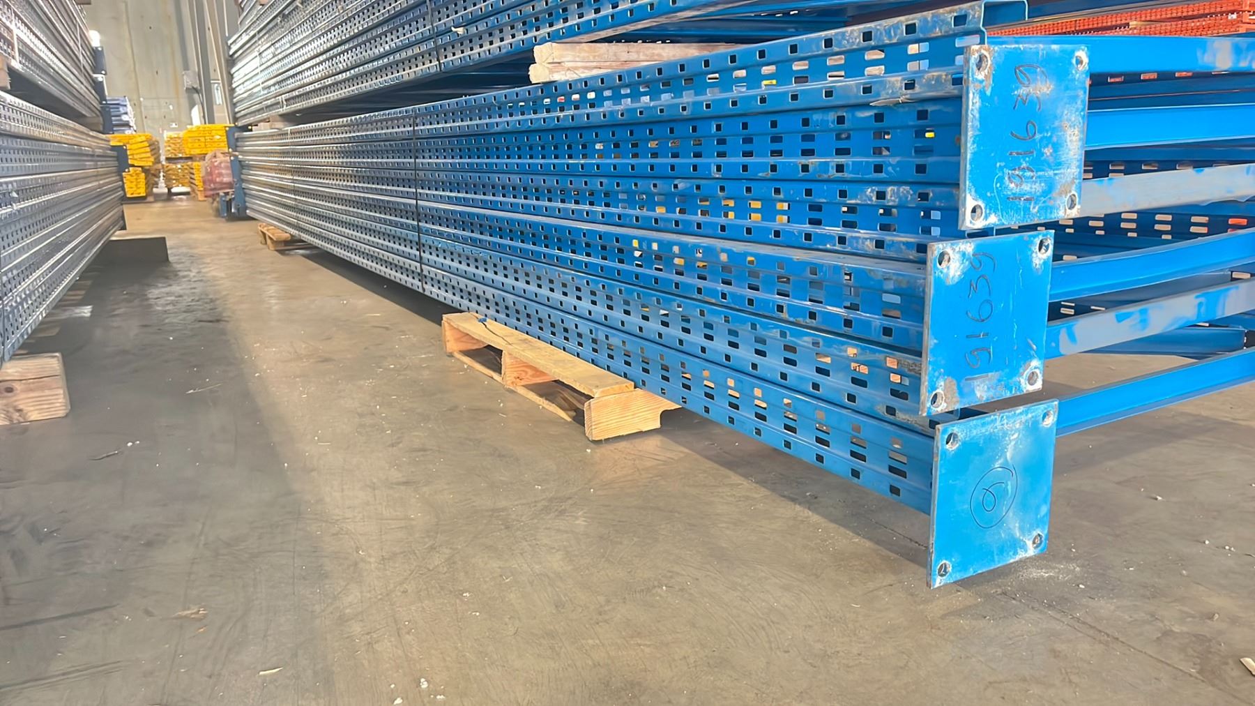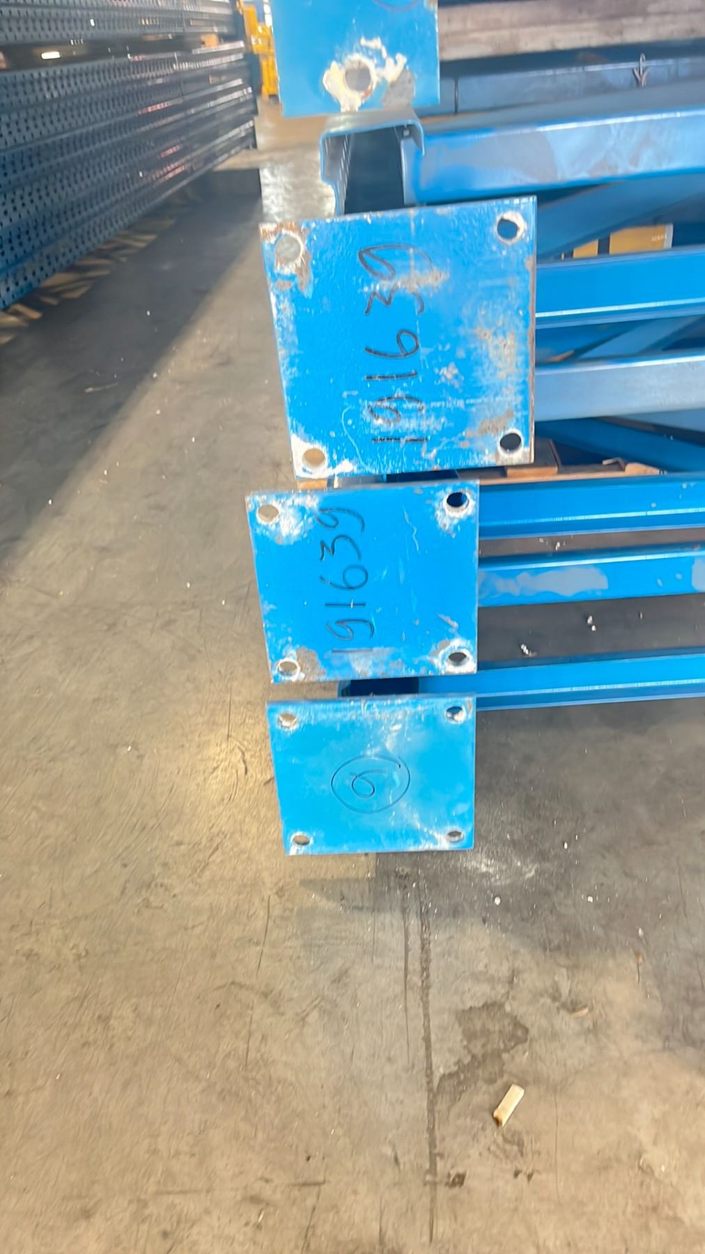 BLUE PALLET RACKING UPRIGHTS (6 PCS.) - APPROX. 24'H X 42"W WITH 8" X 8" (3/8") BASES