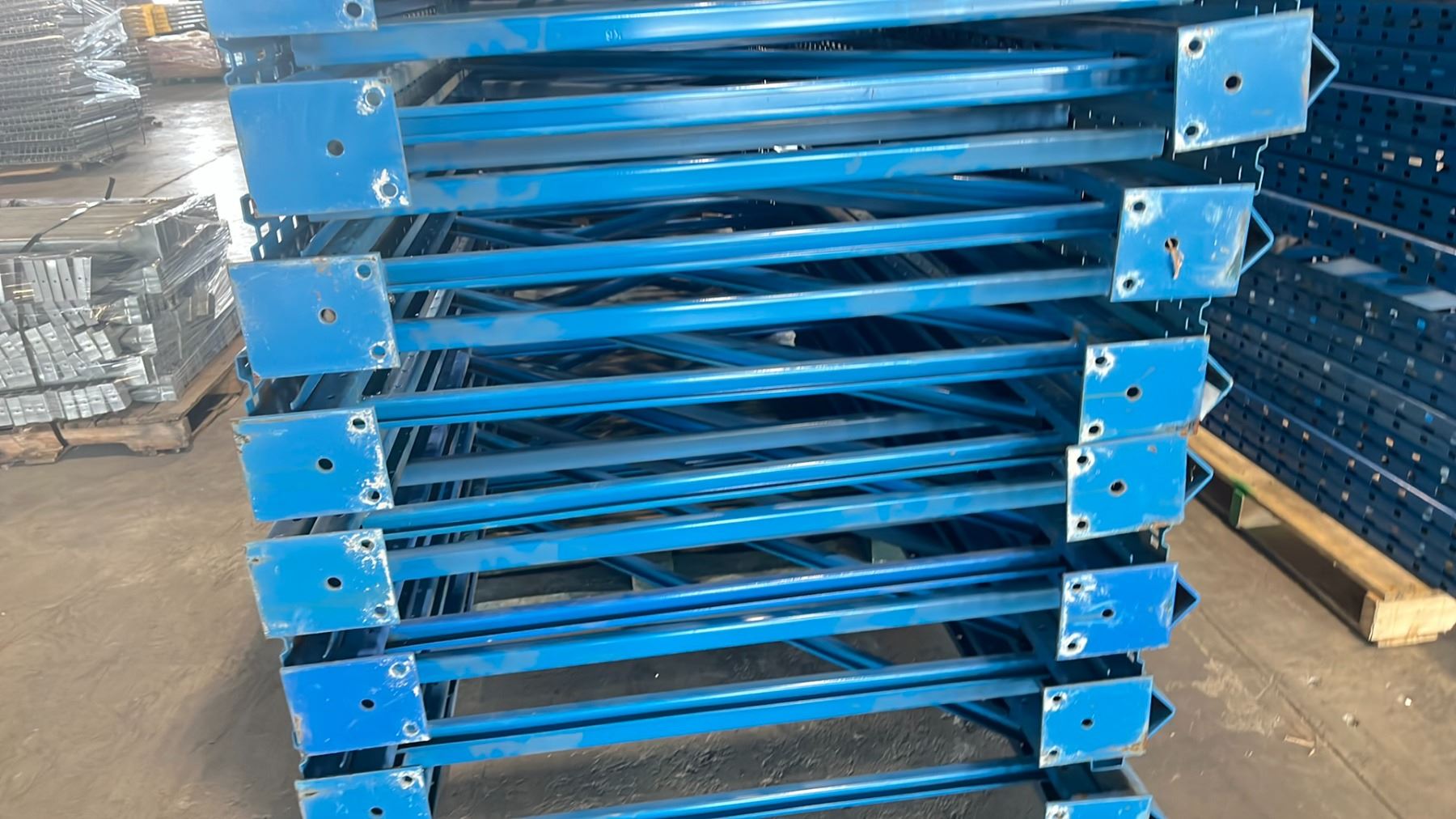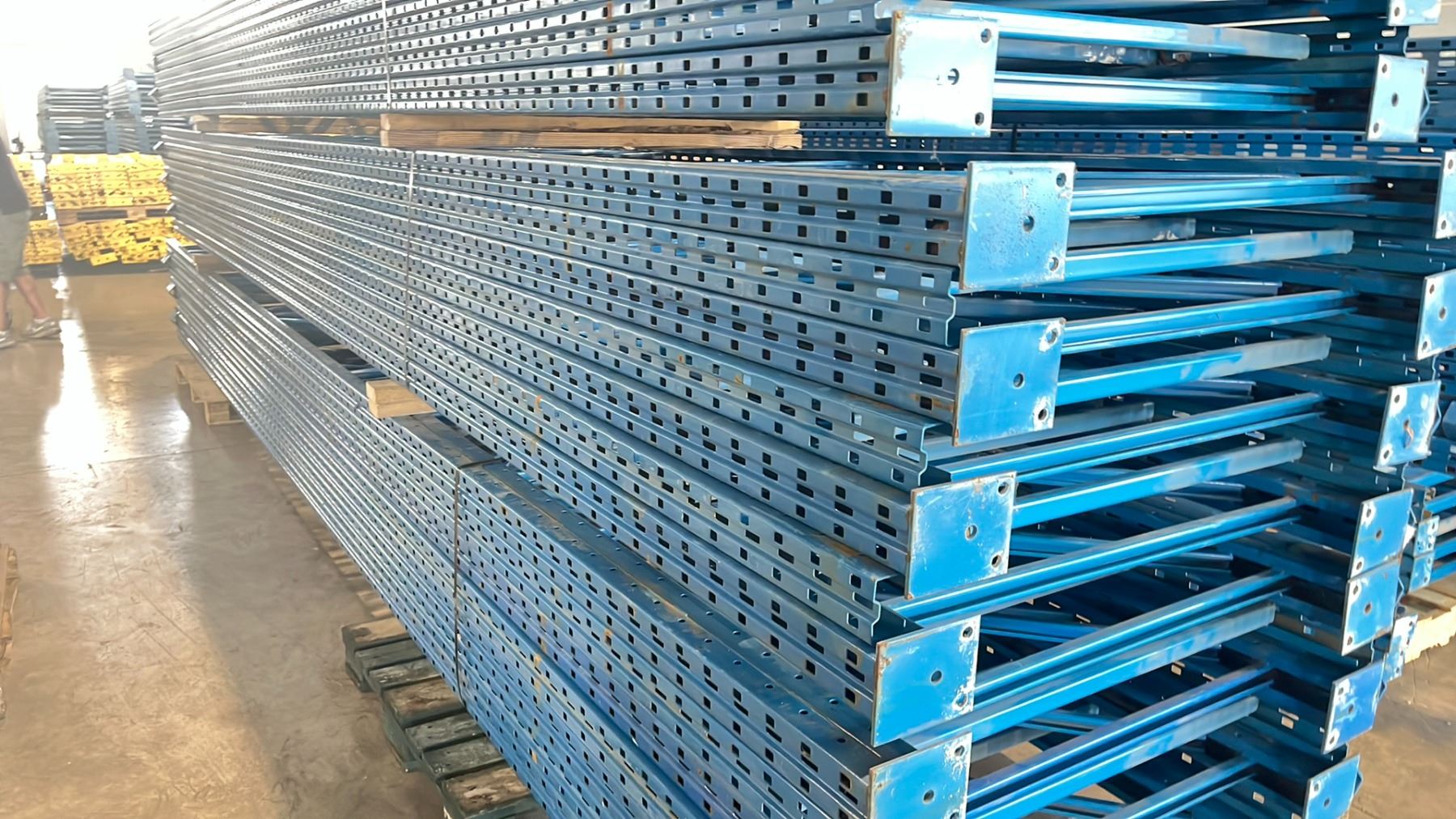 BLUE PALLET RACKING UPRIGHTS (7 PCS.) - APPROX. 22'H X 44"W WITH 5" X 6" X 1/4" BASES