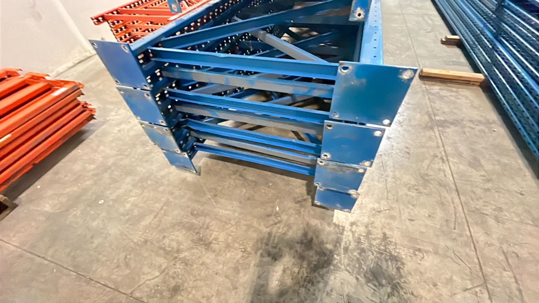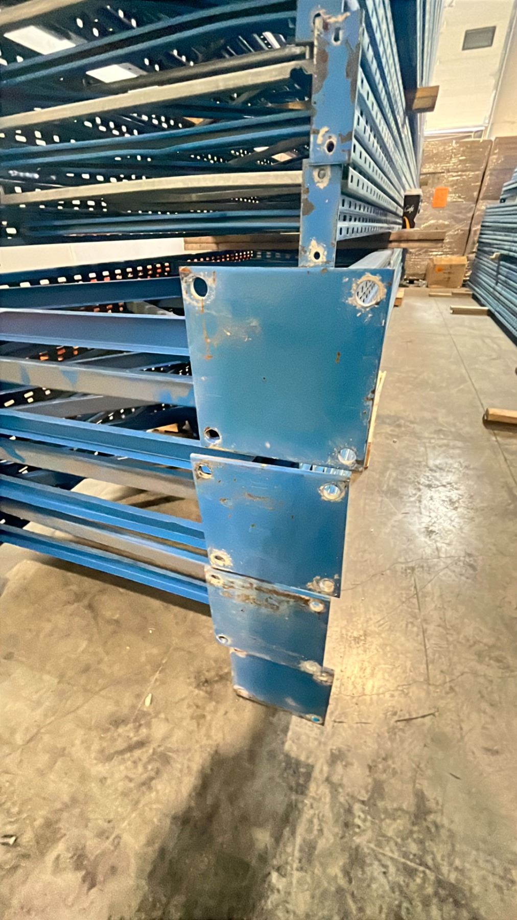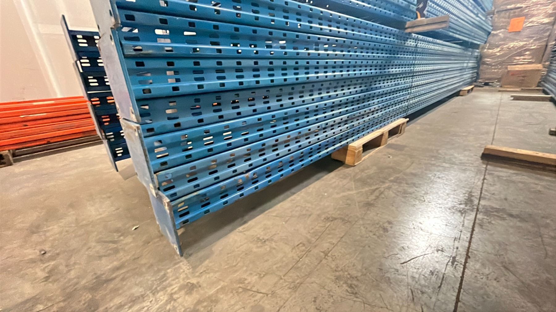 BLUE PALLET RACKING UPRIGHTS (7 PCS) - APPROX. 24'H X 42"W WITH 8" X 8" X 3/8" BASES