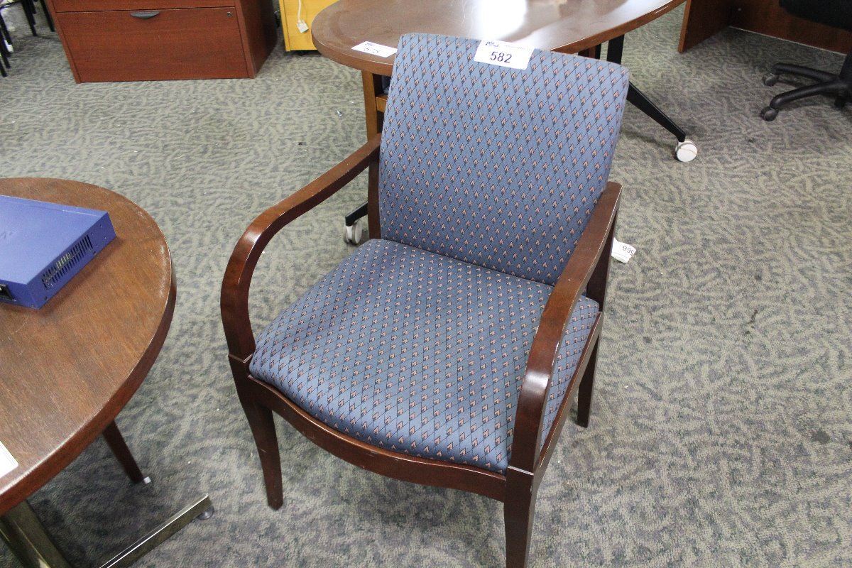 BLUE PATTERN MAHOGANY FRAME CLIENT CHAIR