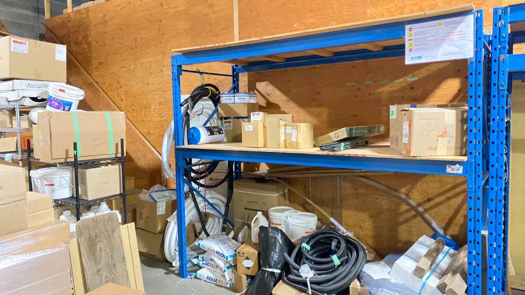 BLUE RACKING 12'4"X42"X8' WITH 2 UPRIGHTS, 4 BEAMS, PLYWOOD DECKING. PURCHASED NEW IN 2021 *LAST DAY FOR REMOVAL, REQUIRES TOOLS AND MANPOWER*