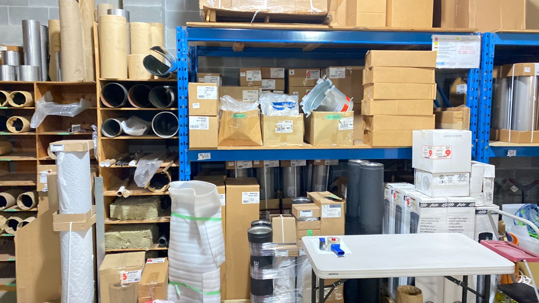 BLUE RACKING 12'4"X42"X8' WITH 2 UPRIGHTS, 4 BEAMS, PLYWOOD DECKING. PURCHASED NEW IN 2021 *LAST DAY FOR REMOVAL, REQUIRES TOOLS AND MANPOWER*