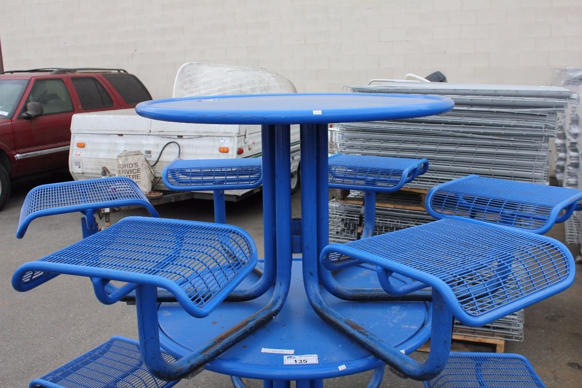 BLUE ROUND METAL PICNIC TABLE WITH SEATS