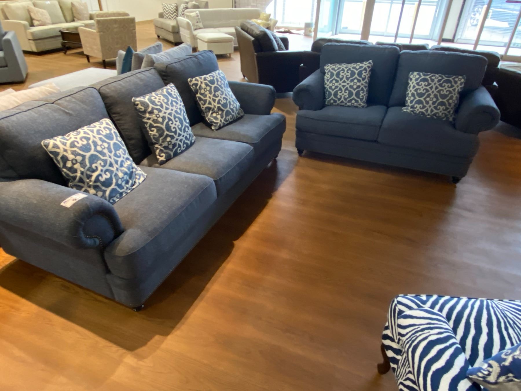 BLUE SOFA AND LOVESEAT SET, COMES WITH THROW CUSHIONS