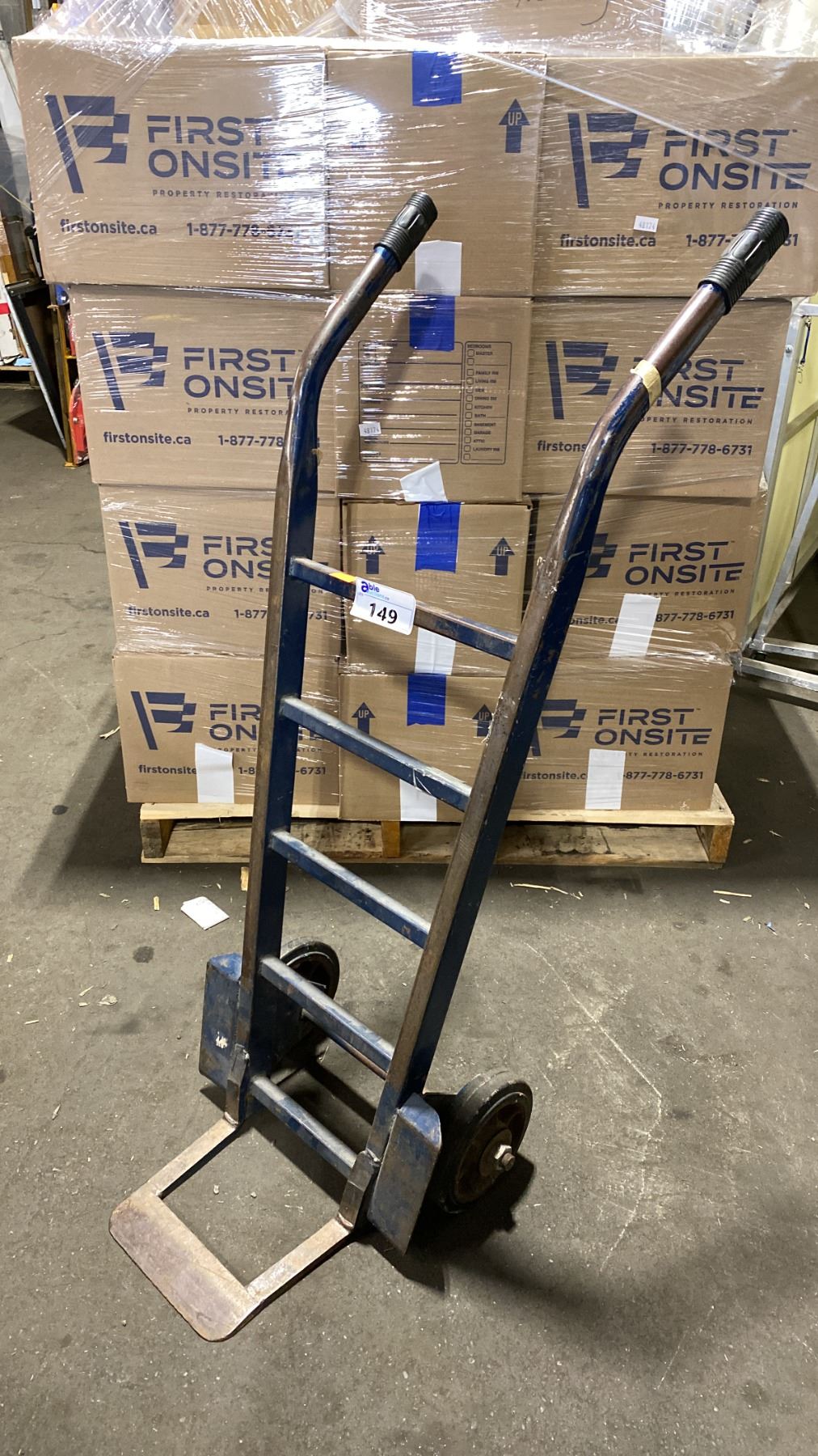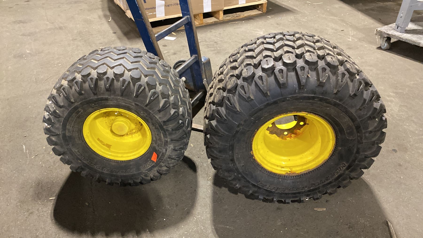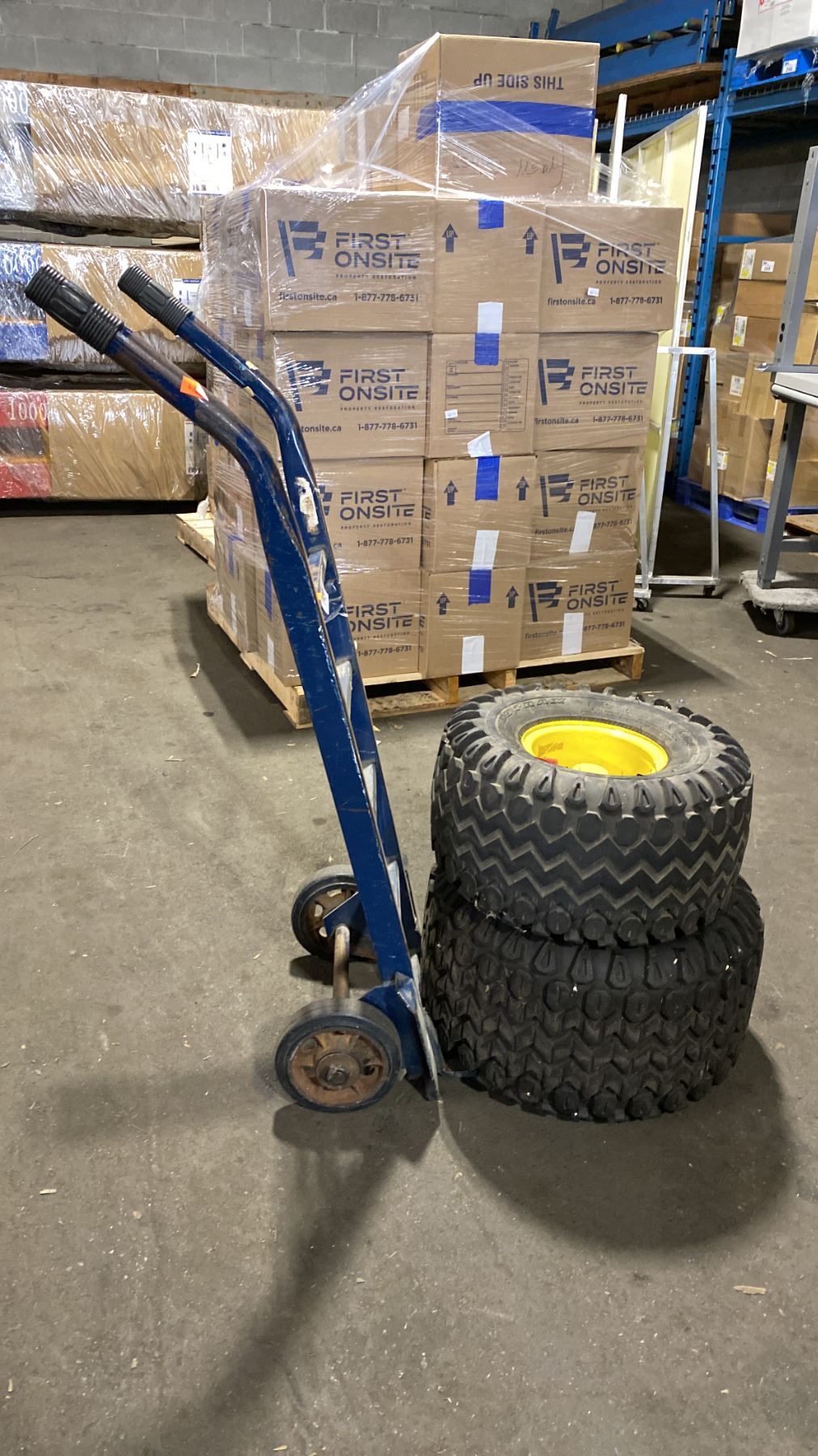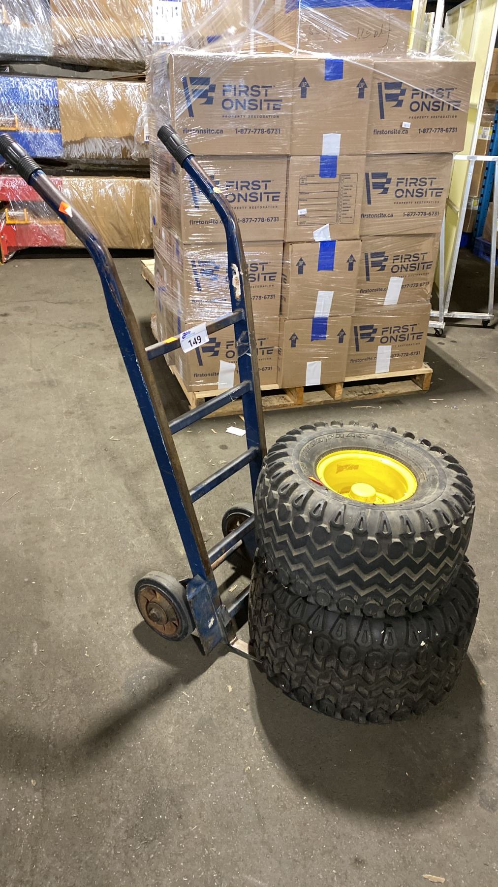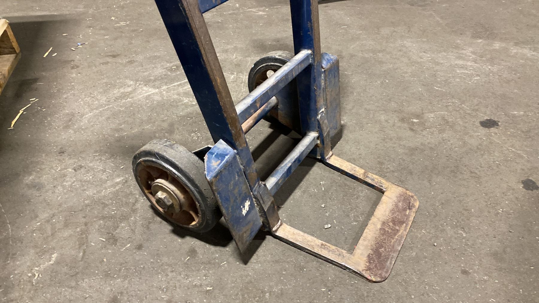 BLUE SOLID TIRE HAND TRUCK WITH 2 ASSORTED SIZE EQUIPMENT TIRES