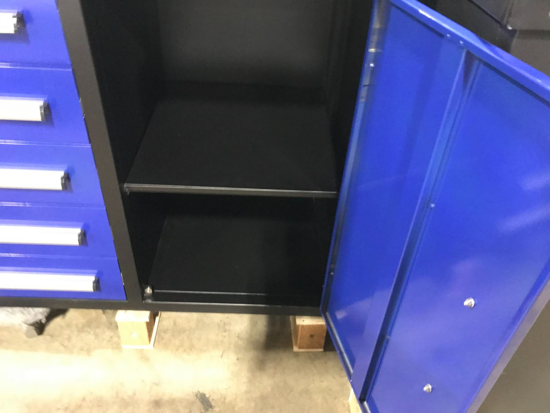BLUE STEELMAN 10 DRAWER 2 DOOR WORK BENCH H36" X W88" X D26" WITH ANTI-SLIP LINING LOCKING